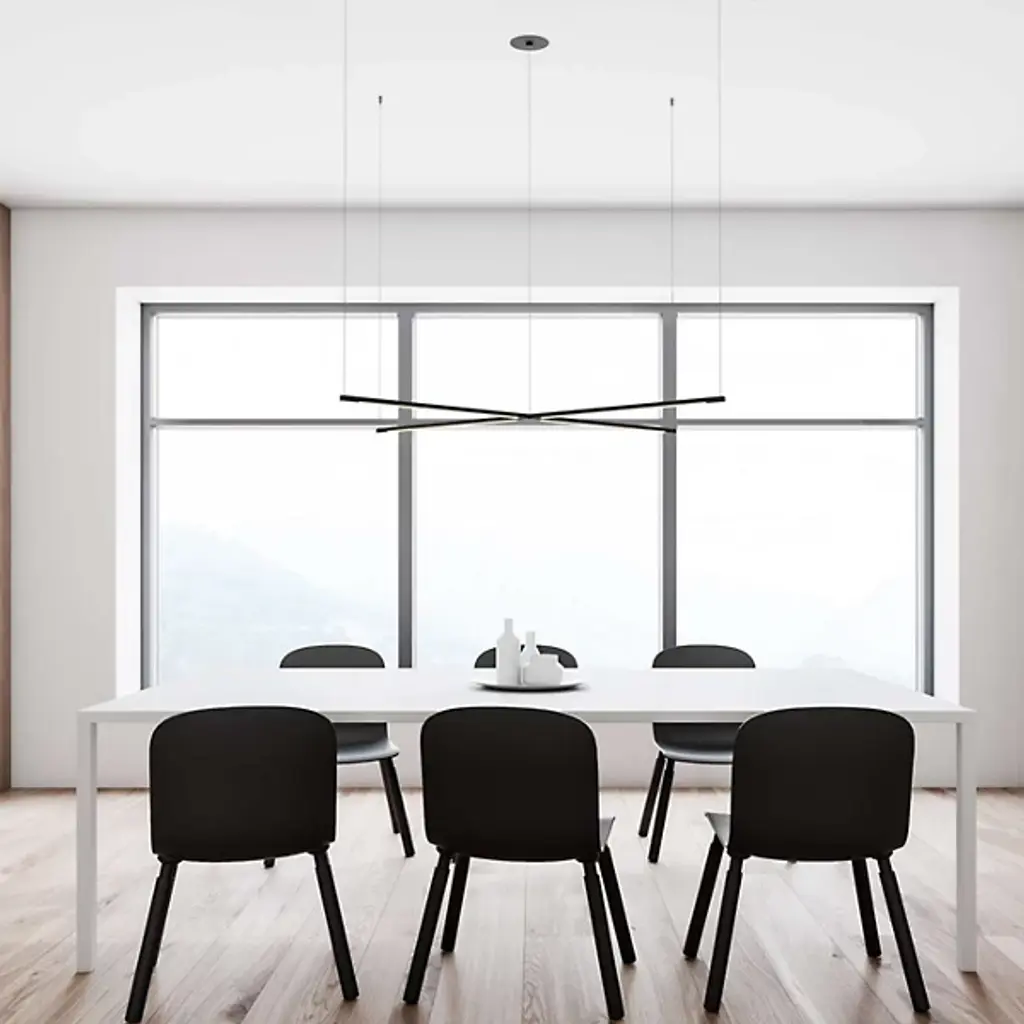 X marks the spot. Create a dynamic light to fit the mood with the multi-adjustable design of the Z-Bar Cross LED Pendant from Koncept. A handsome addition over kitchen and dining areas, the pendant gives off a floating sensation with its fine suspension. Made from aluminum, the crossing frame offers a clean, low-key silhouette to match the refined feeling of your rooms. The four line segments rotate with simple adjustment by the hand. LEDs cover one side of each segment in a uniform glow. Point the LEDs down for a spacious glow over your tabletops or point them up to create a room-engulfing ambient glow.