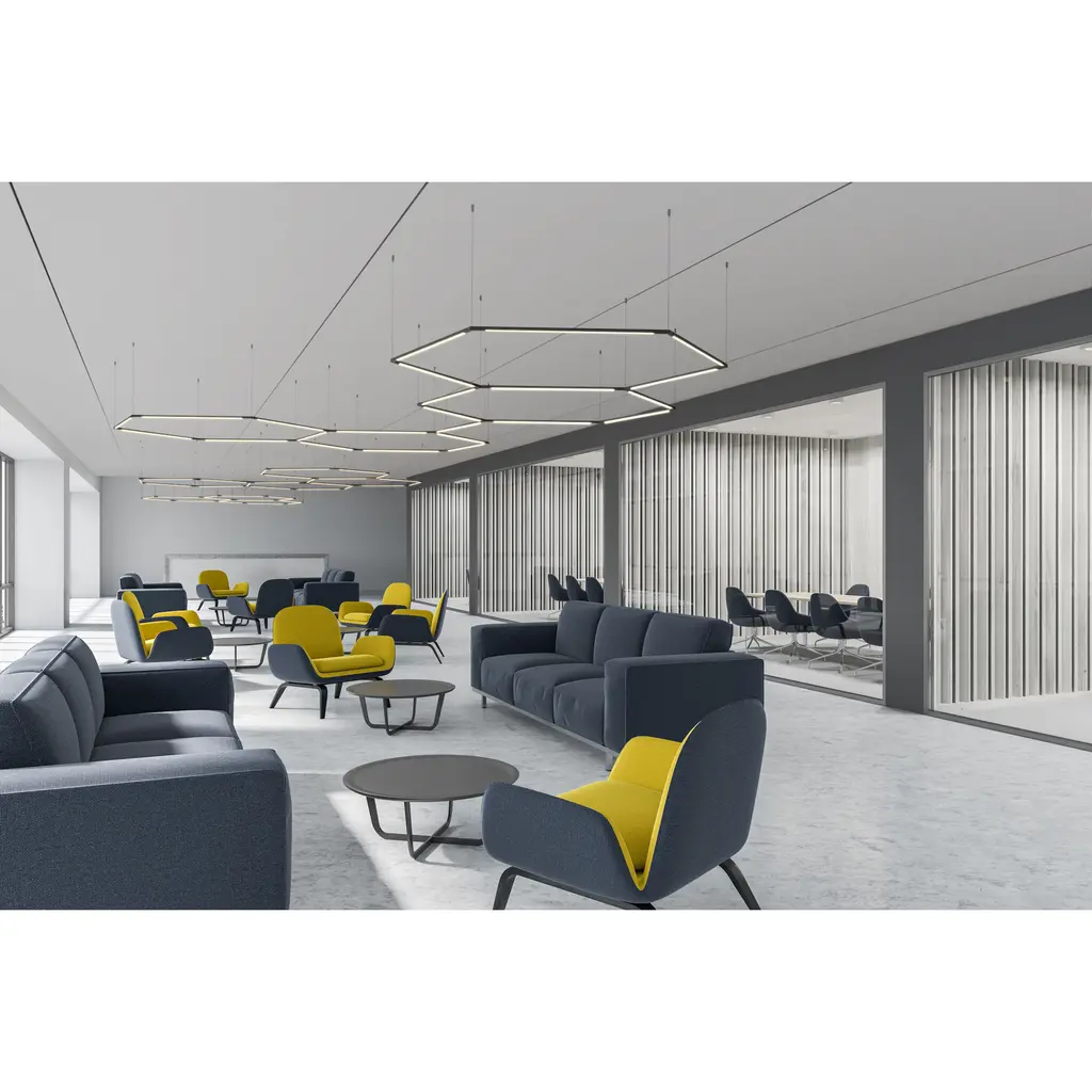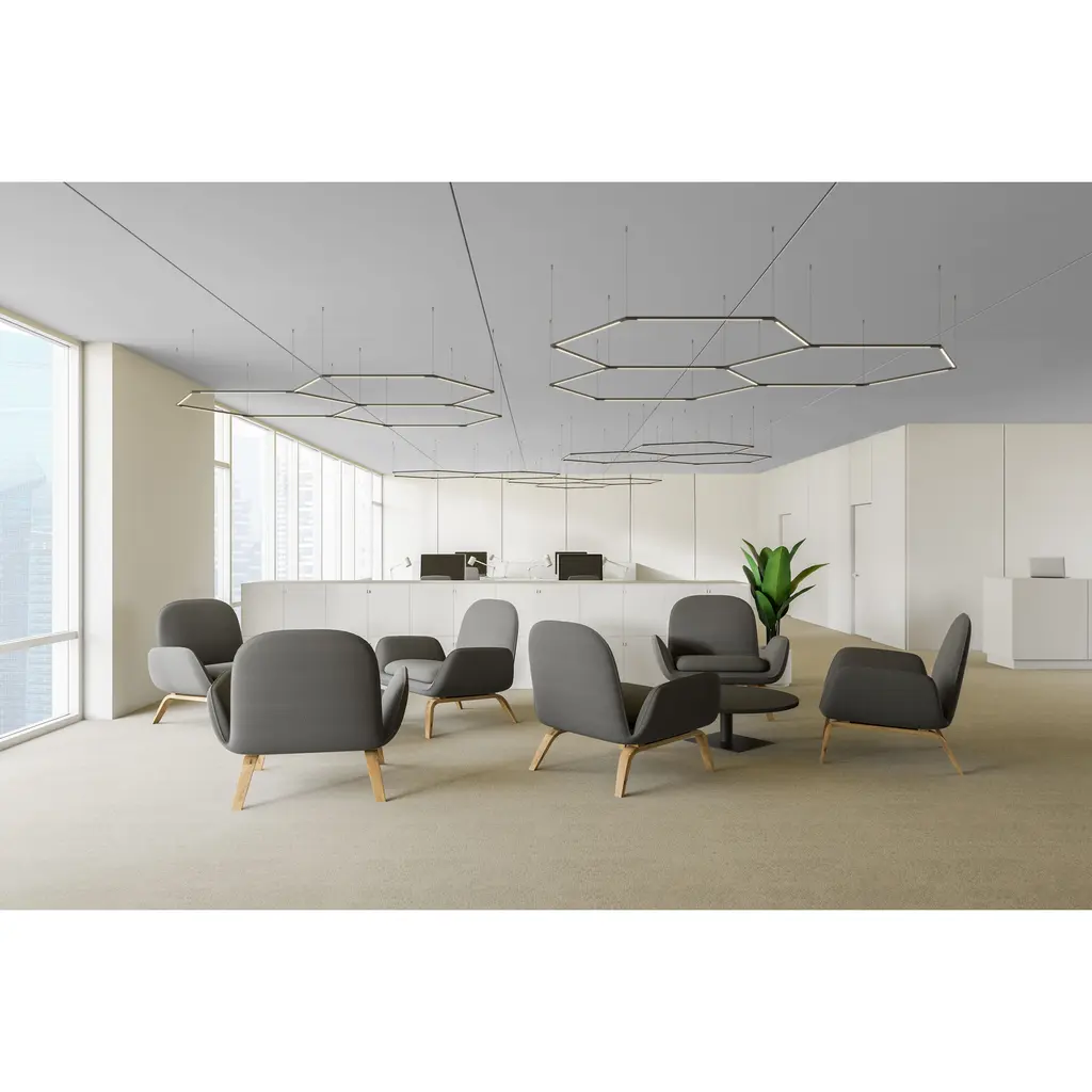 The Z-Bar Pendant line is an architectural lighting system featuring modular LED light bars. Choose from a variety of standard shapes, or design your own pendant using Koncept's dedicated web app. The "Honeycomb" pendant is a sleek standard shape featurin