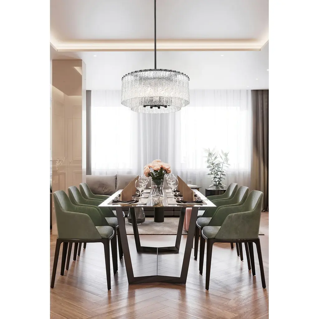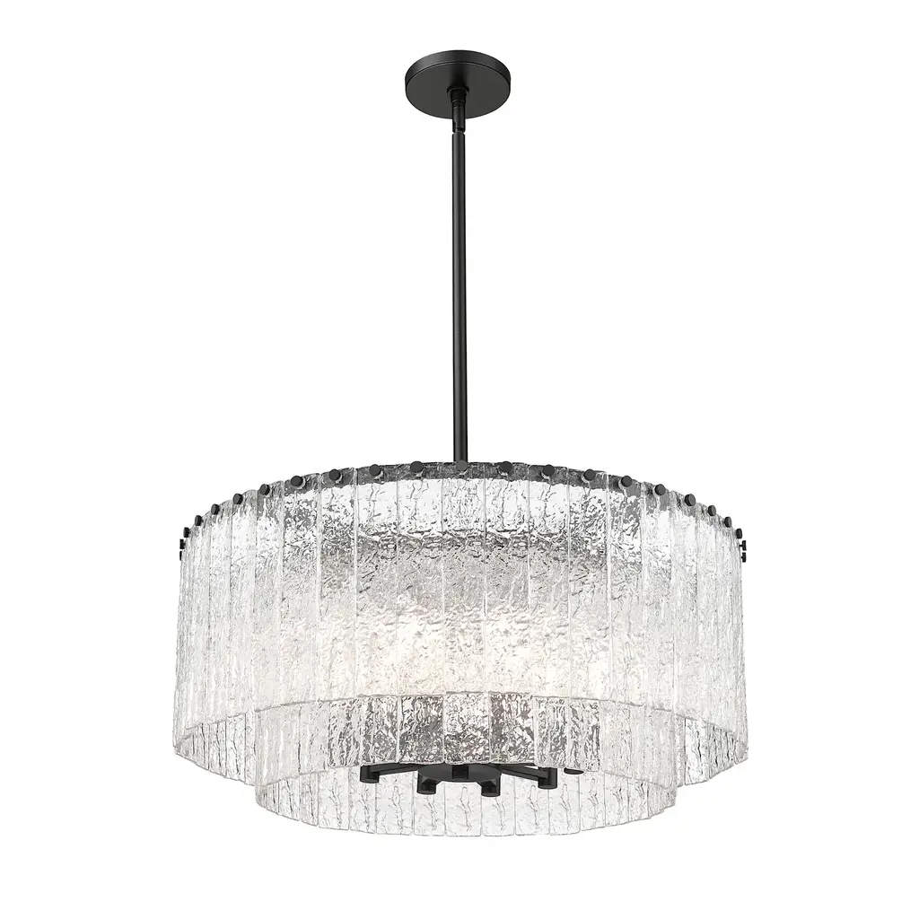 With the delicate beauty of melting ice, Glacier is comprised of individual panels of textured glass that soften the illumination, preventing glare from the light source. Just like real ice, the glass panels, seem to glisten in the light which creates the feel of a truly unique luminaire.Features:Dimensions:Electrical Specifications: