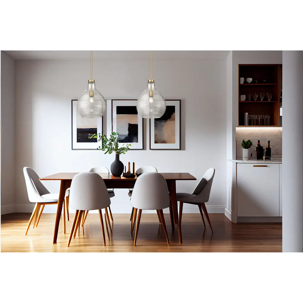 Available in two sizes, the Bon Air pendant’s unique glass treatment adds artisanal flair that also refracts the light, reducing glare.Features:Dimensions:Electrical Specifications: