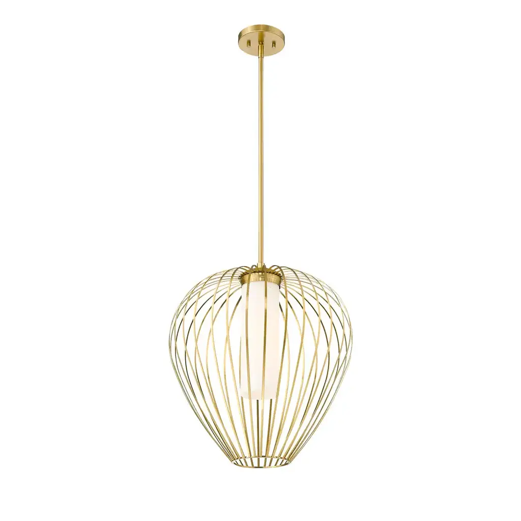 The Savanti pendant, with its delicately curved frame surrounding a matte glass shade, evokes an organic beauty. Install several over a kitchen island or dining table or have a single fixture illuminating a seating area. It is also damp rated for use in a covered outdoor living space.Features:Dimensions:Electrical Specifications:
