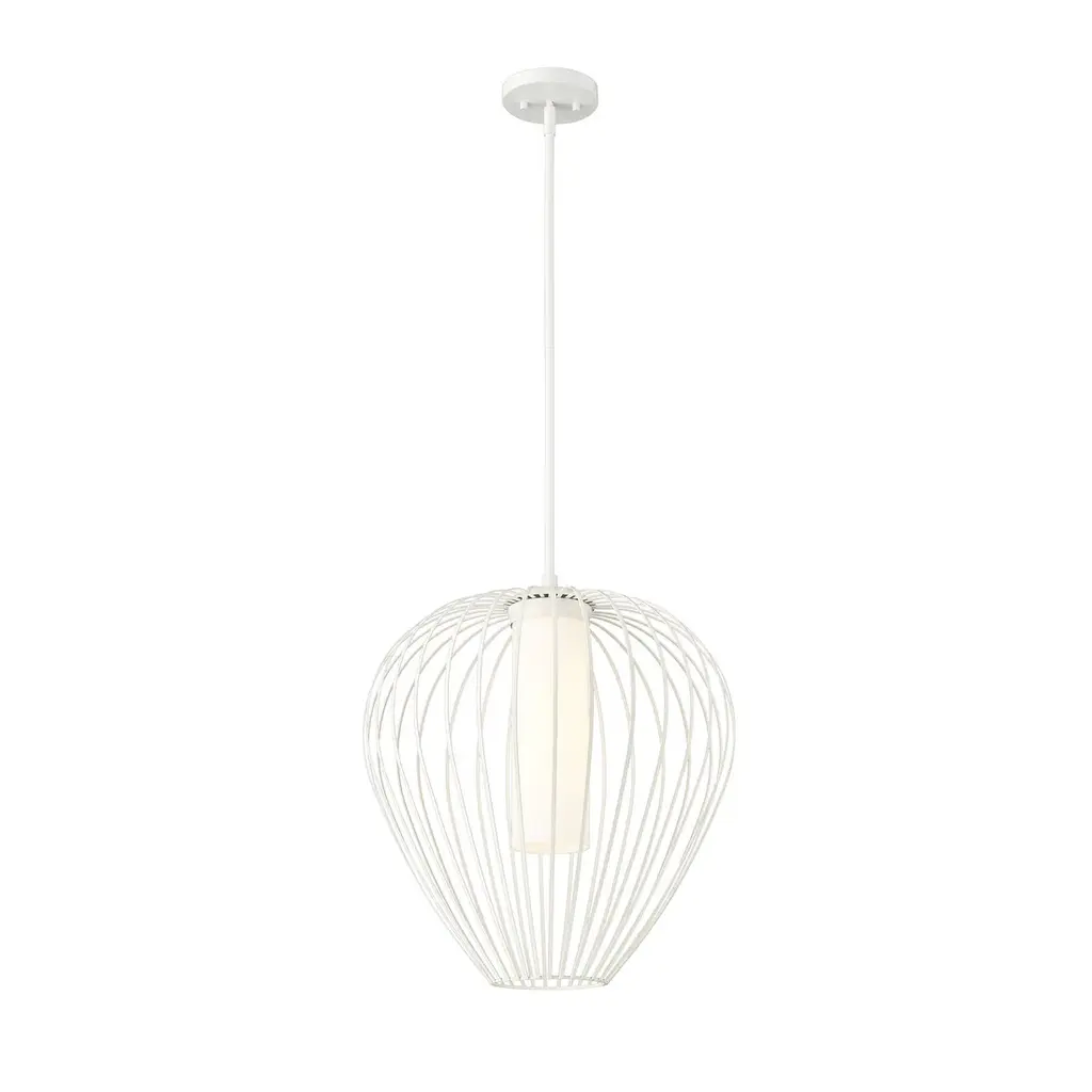 The Savanti pendant, with its delicately curved frame surrounding a matte glass shade, evokes an organic beauty. Install several over a kitchen island or dining table or have a single fixture illuminating a seating area. It is also damp rated for use in a covered outdoor living space.Features:Dimensions:Electrical Specifications: