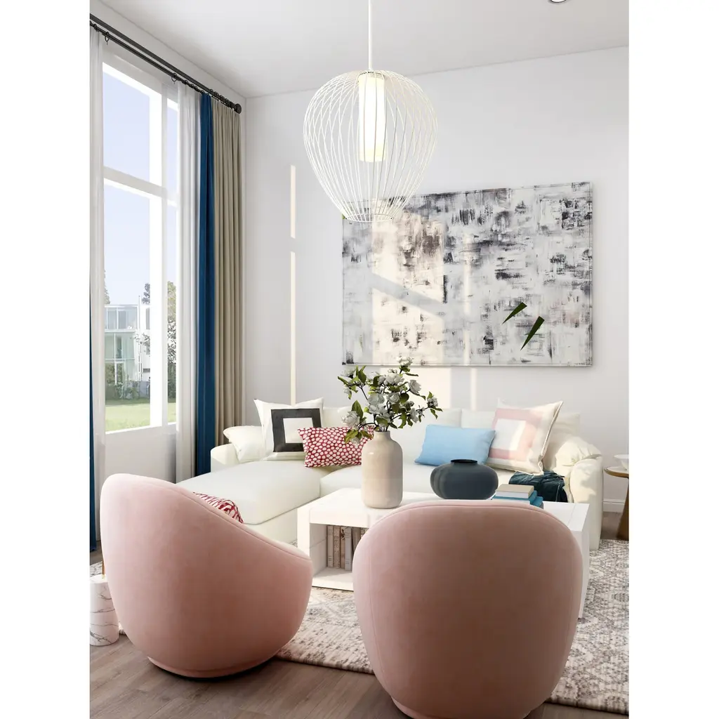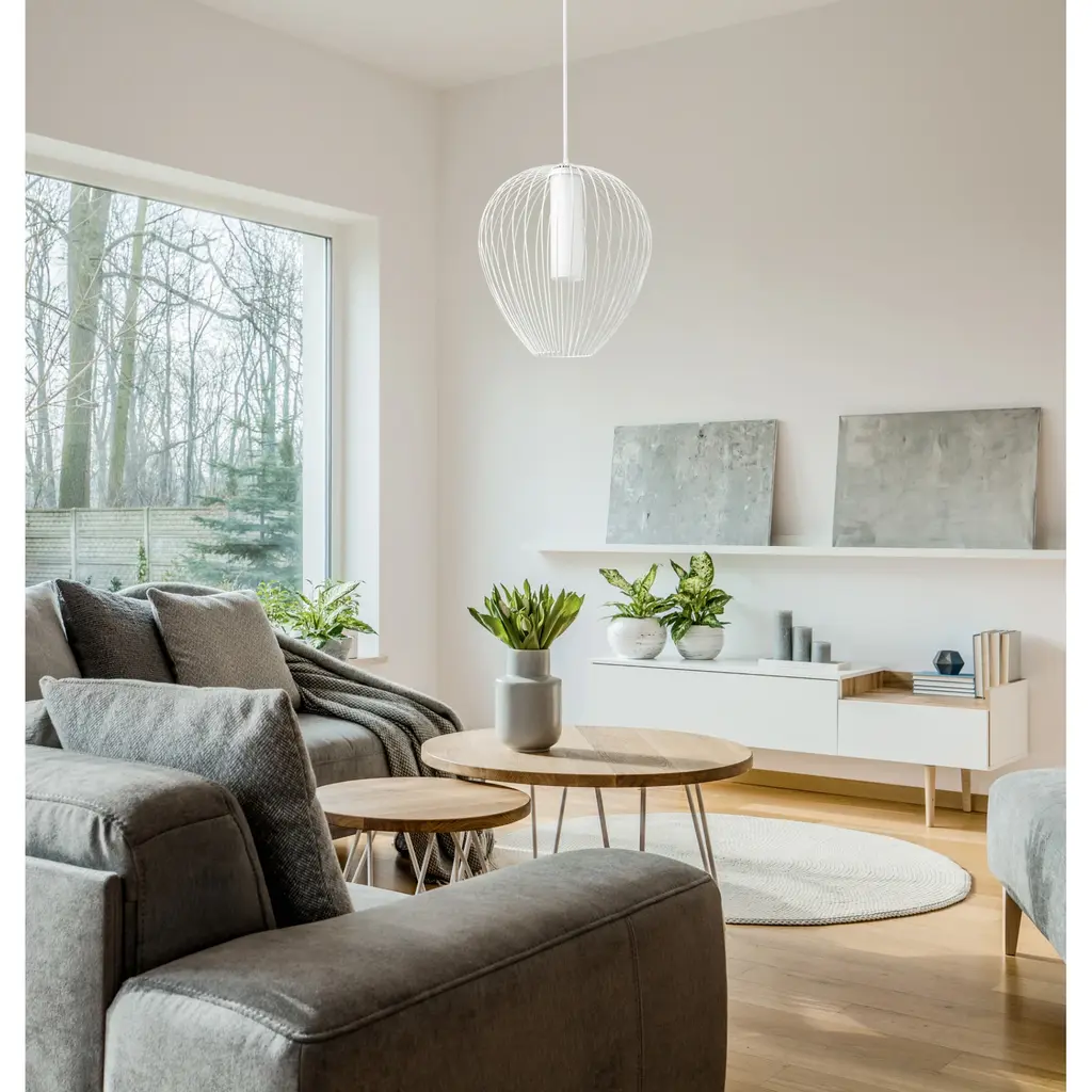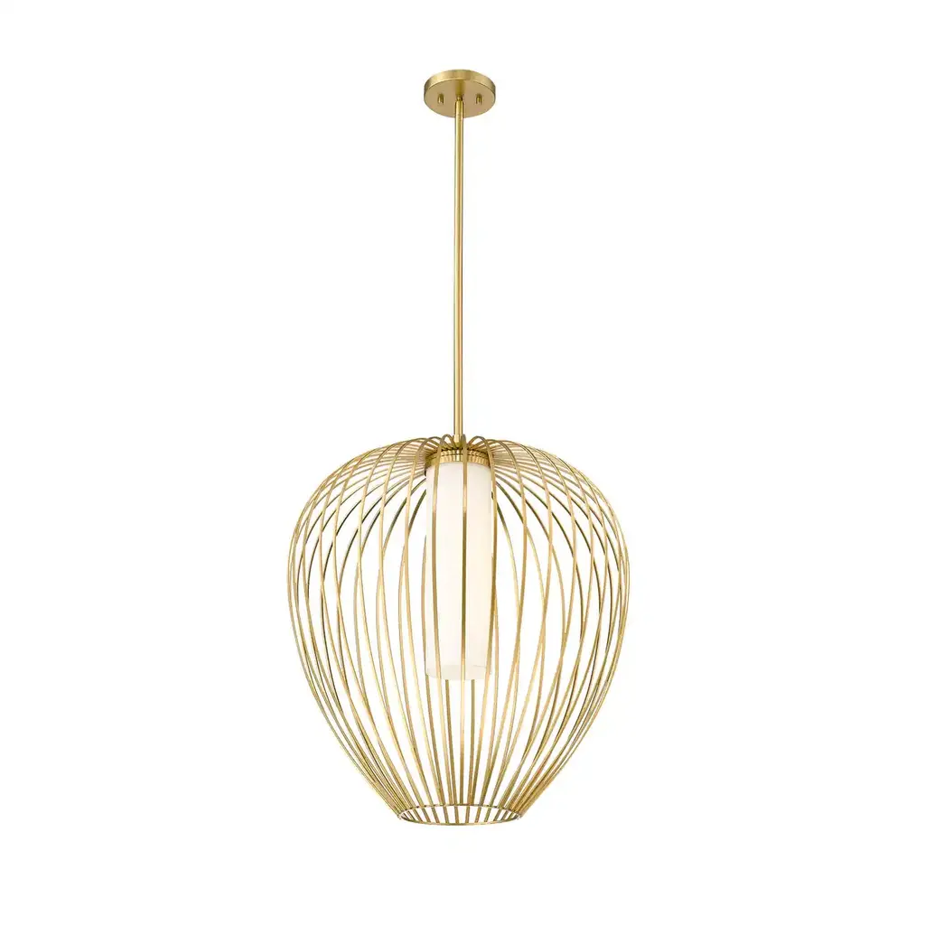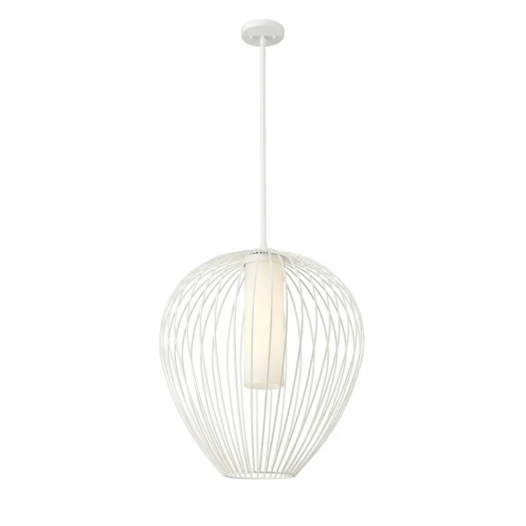 The Savanti pendant, with its delicately curved frame surrounding a matte glass shade, evokes an organic beauty. Install several over a kitchen island or dining table or have a single fixture illuminating a seating area. It is also damp rated for use in a covered outdoor living space.Features:Dimensions:Electrical Specifications: