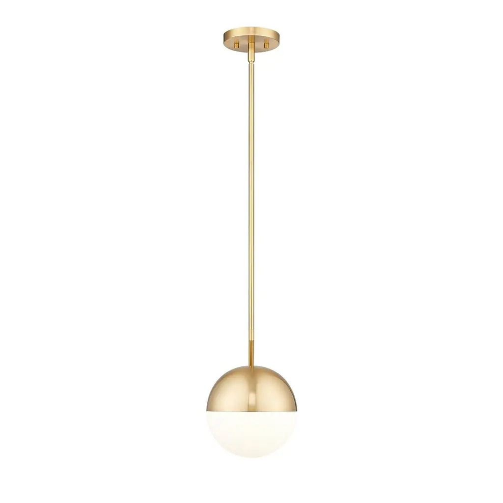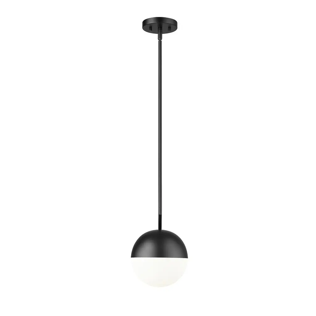 Embrace angularity with the striking structure of this mid-century modern one-light pendant. It's a seamless design that creates refined character alone or in multiples to create a larger lighting installation. Its shade is an orb of glass, casting soft, glare-free illumination over your kitchen, living or dining room.Features:Dimensions:Electrical Specifications: