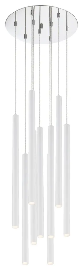 Z-LITE 917MP24-WH-LED-9RCH 9 Light Island/BilliardStylish and elegant, this eleven-light pendant light boasts a windchime-inspired silhouette. Elongated lines emerge from a rounded base, all streamlined in a crisp matte white finish.Style: ModernCollection: ForestFrame Finish: Matte WhiteFrame Material: SteelShade Finish/Color: Matte WhiteShade Material: SteelDimension(in): 42(W) x 24(H)Cord/Wire Length: 118"Bulb: (9)5W LED-Integrated Base(Included),DimmableLED Source Lumen: 4050LED Delivered Lumen: 2160LED Color Temperature: 3045�75K LED Color Rendering Index(CRI): CRI>80UL Classification/Application: ETL/CETL Certified/Damp