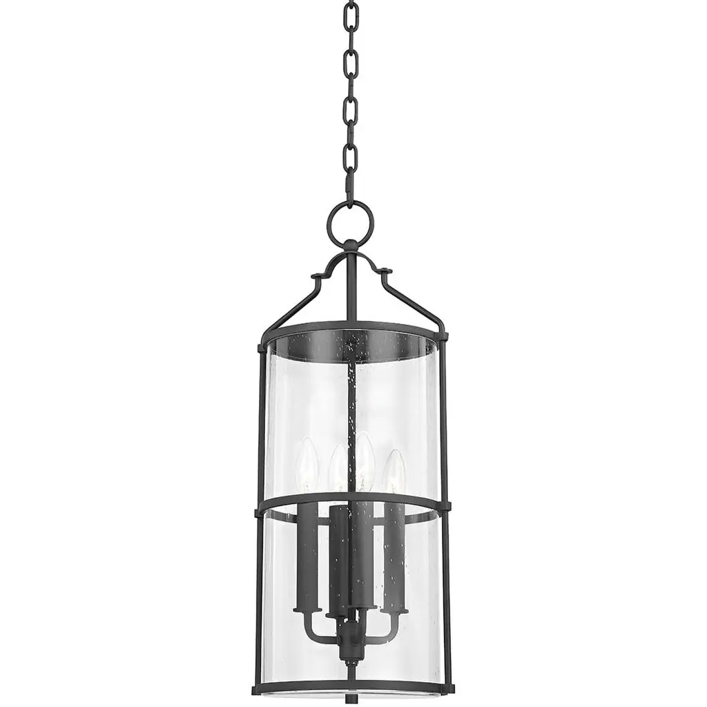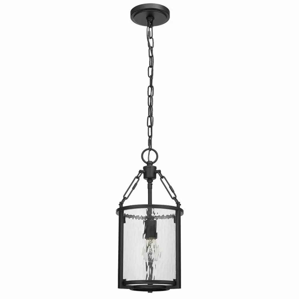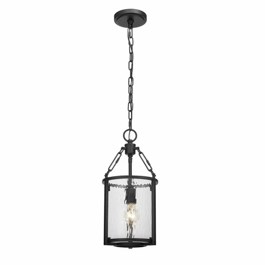 Introduce edgy dramatic vibes with the look of chic artistry in a light fixture that tells a story. This one-light pendant from the Barrington collection offers a bold industrial motif with a round cage made of matte black finish steel framing romantic clear waterglass that distorts a view of candelabra bulbs creating a castle-inspired look. Choose this pendant to deliver accent and ambient lighting in a compact space or foyer.