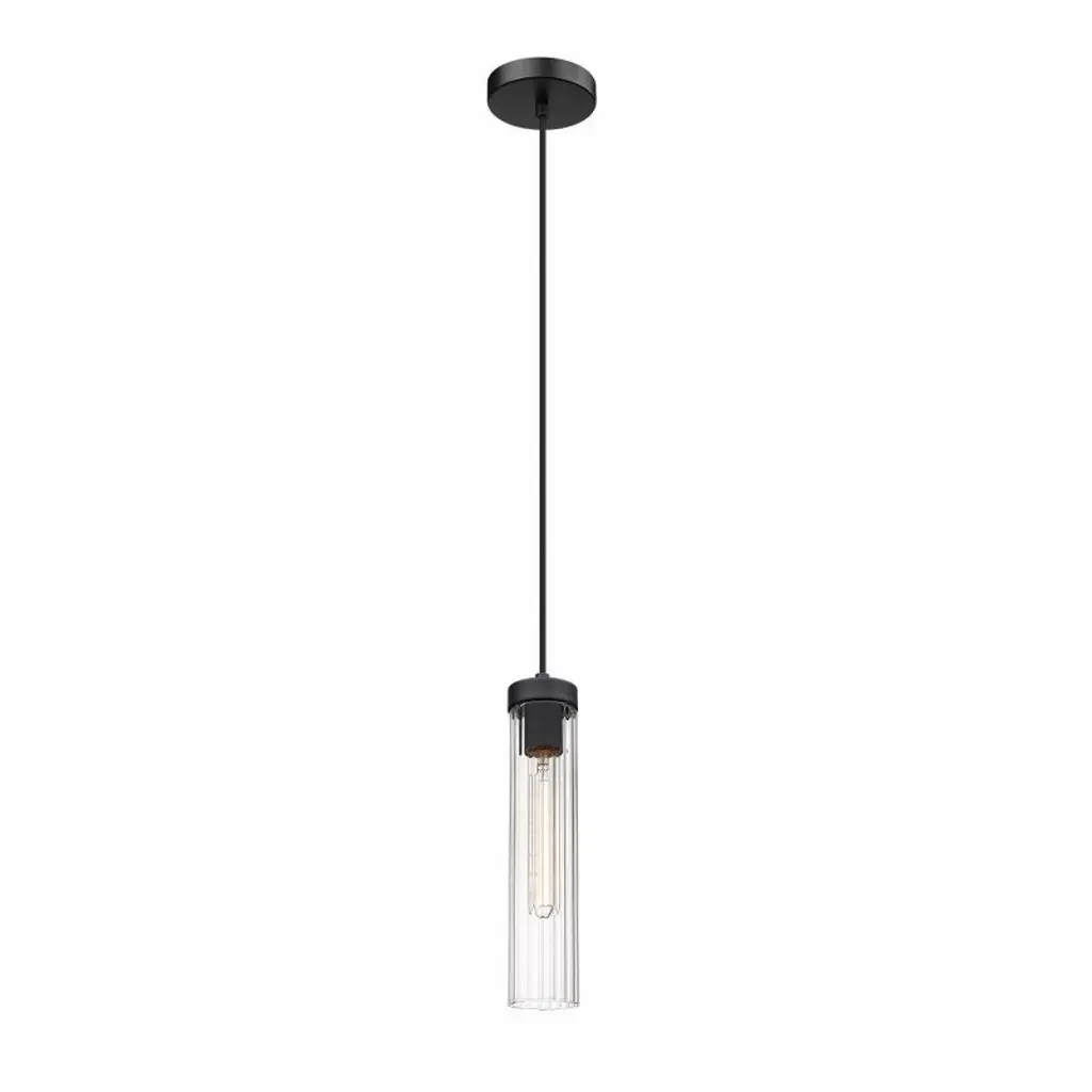 Slim, fluted glass create soft light diffusion for a Beau collection one-light pendant. Modern with a timeless sensibility, the pendant shows off a clean, precise silhouette complete with a black cloth suspension and brushed nickel hardware and ceiling plate for a gleaming finishing touch.