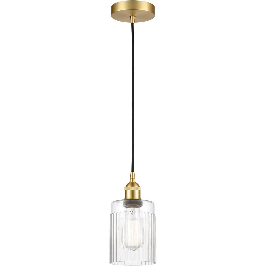 Slim, fluted glass create soft light diffusion for a Beau collection one-light pendant. Modern with a timeless sensibility, the pendant shows off a clean, precise silhouette complete with a black cloth suspension and brushed nickel hardware and ceiling plate for a gleaming finishing touch.