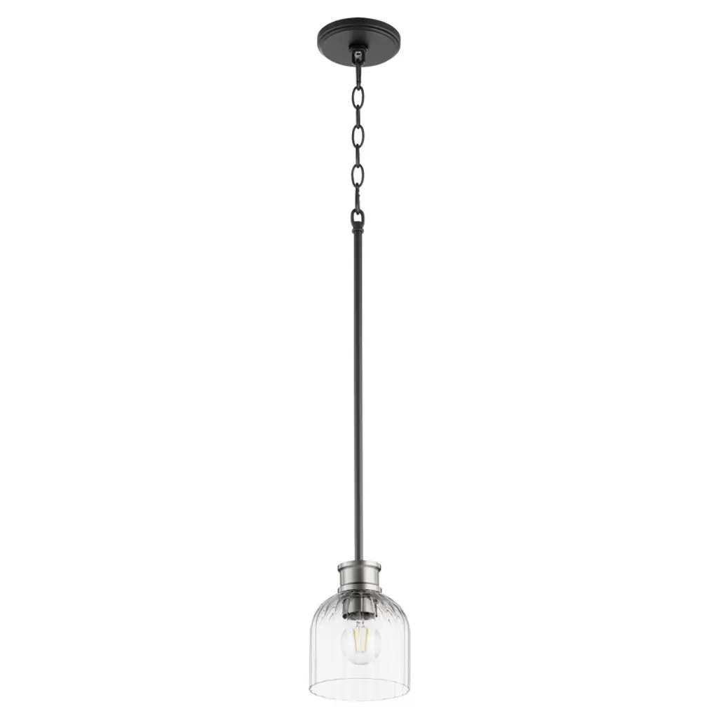 Indulge in a love of historical themed decor with this elegant one-light mini-pendant. A steel frame with matte black finishes offers a fitting host to a stylish domed shade crafted from romantic clear seedy glass. No. of Rods: 5 Cord Length: 110.00 Rod Length(s): 12.00 Dimmable: Yes Material: Steel, Finish Color: Matte Black/Chrome, Width: 8.75", Height: 11.5", Length: 8.75", Lamping Type: Incandescent, Number Of Bulbs: 1, Wattage: 100 Watts, Dimmable: Yes, Moisture Rating: Damp Rated