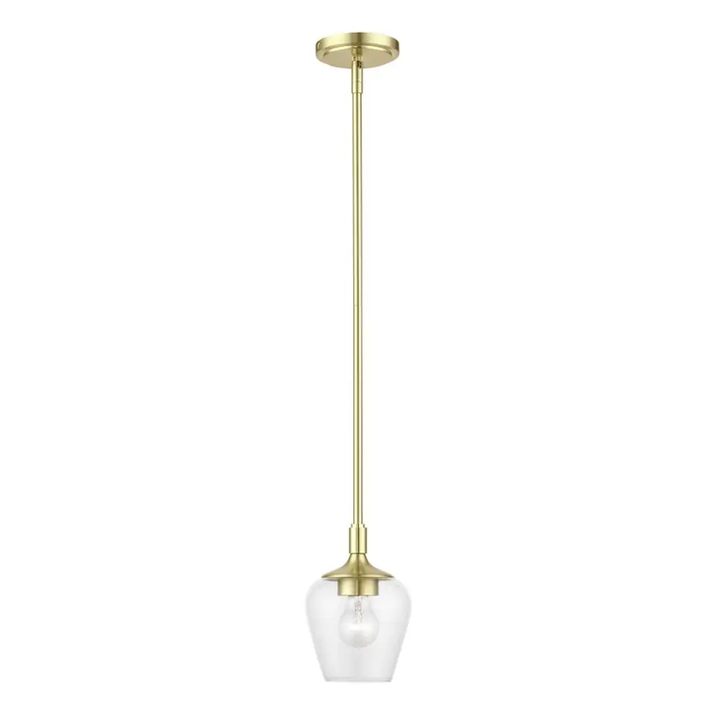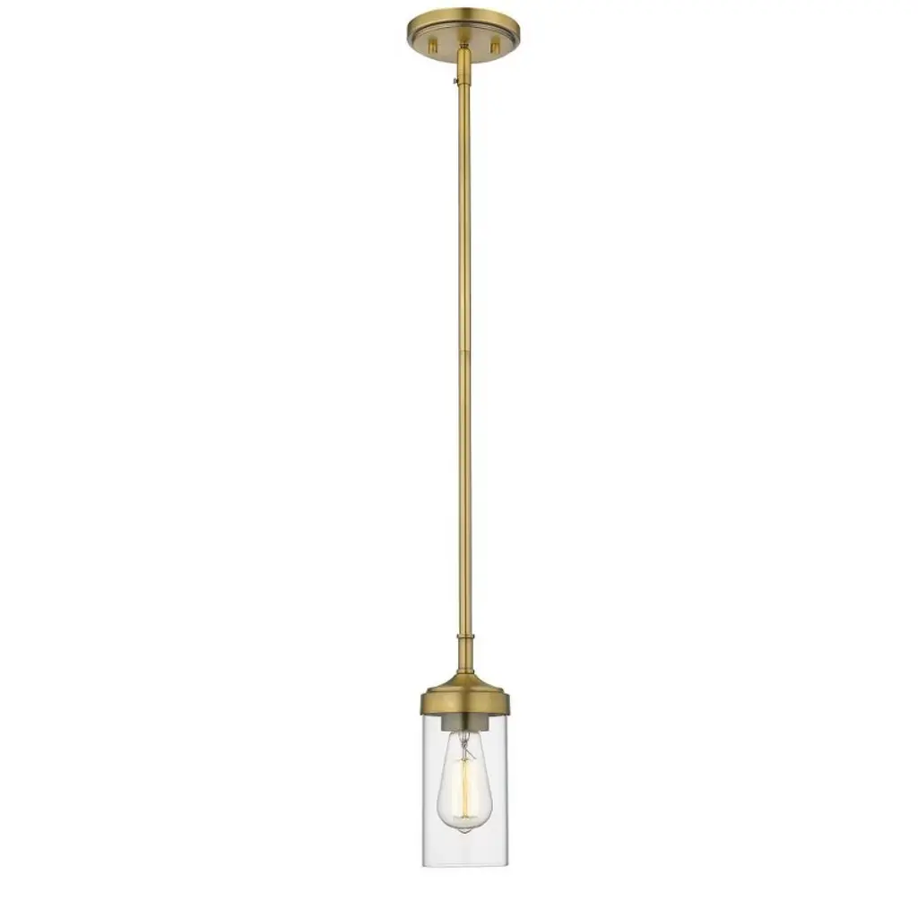 Elegantly simple yet stylish, this one-light pendant delivers targeted lighting to a compact space. Indulge in a love of industrial-inspired decor and illuminate a breakfast or reading nook with this foundry brass finish steel and glass pendant. Bedroom/Dining Room/Dinette/Kitchen/Kitchenette No. of Rods: 5 Shade Included: Yes Cord Length: 110.00 Rod Length(s): 12.00 Dimmable: Yes