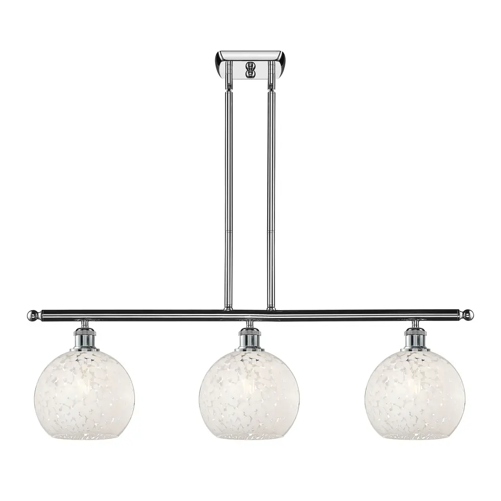 Straight line and rectangular detailing defines the bold and contemporary look of this three light fixture. Circular white glass shades provide a splash of elegance, and telescoping rods ensure a perfect hanging height. This fixture would be the perfect addition to a kitchen, a game room, or anywhere else in the home. Game Room/Dining Room/Kitchen/Kitchenette No. of Rods: 10 Shade Included: Yes Rod Length(s): 12.00 Dimmable: Yes