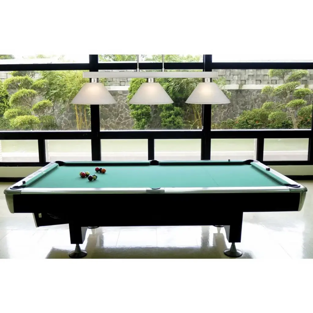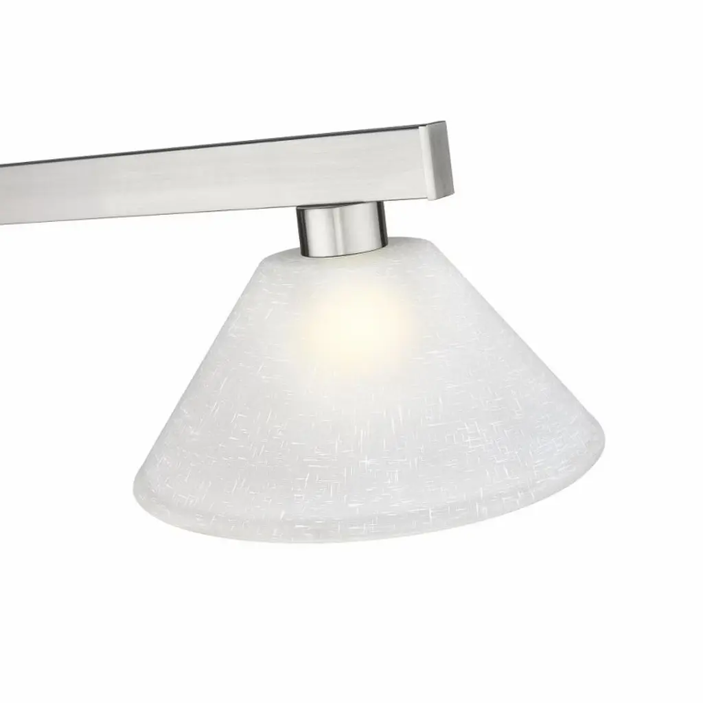 Straight line inspired detailing defines this beautiful three light fixture. Finished in brushed nickel and paired with metal satin gold shades, this three light fixture would be equally at home in the game room, or anywhere else in the house needing a touch of modern charm. Adjustable rods are included to ensure the perfect hanging height.