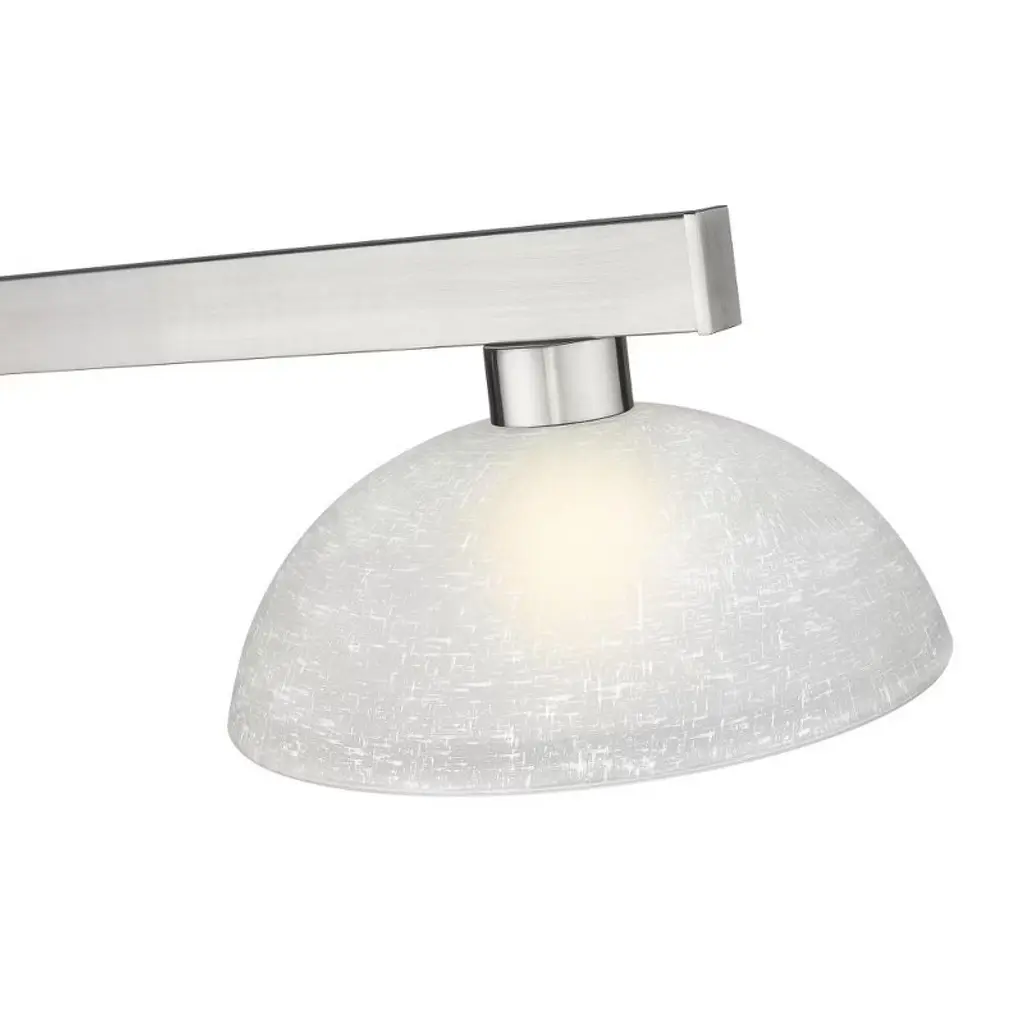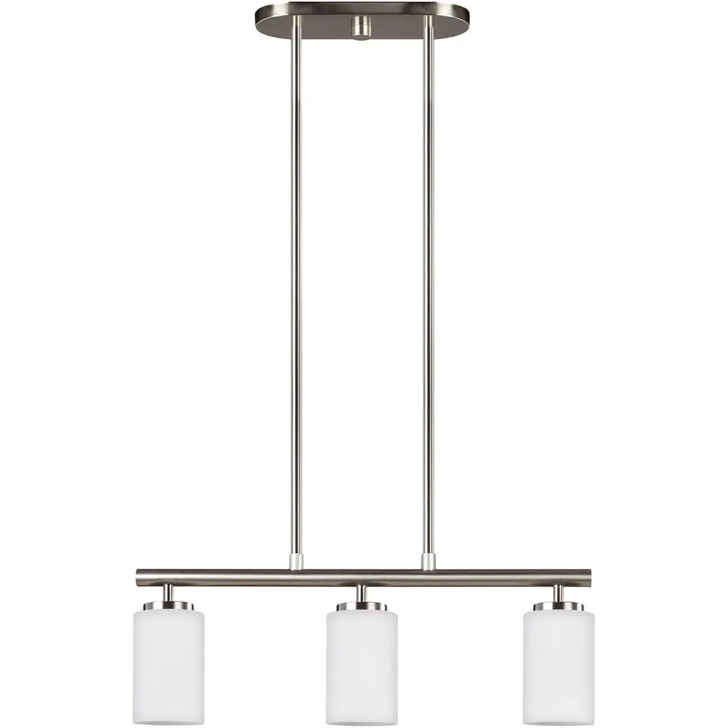 Straight line inspired detailing defines this beautiful three light fixture. Finished in brushed nickel and paired with metal satin gold shades, this three light fixture would be equally at home in the game room, or anywhere else in the house needing a touch of modern charm. Adjustable rods are included to ensure the perfect hanging height.
