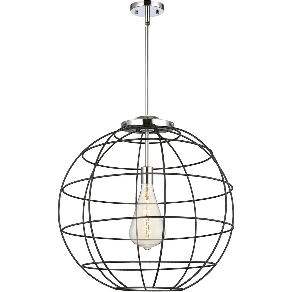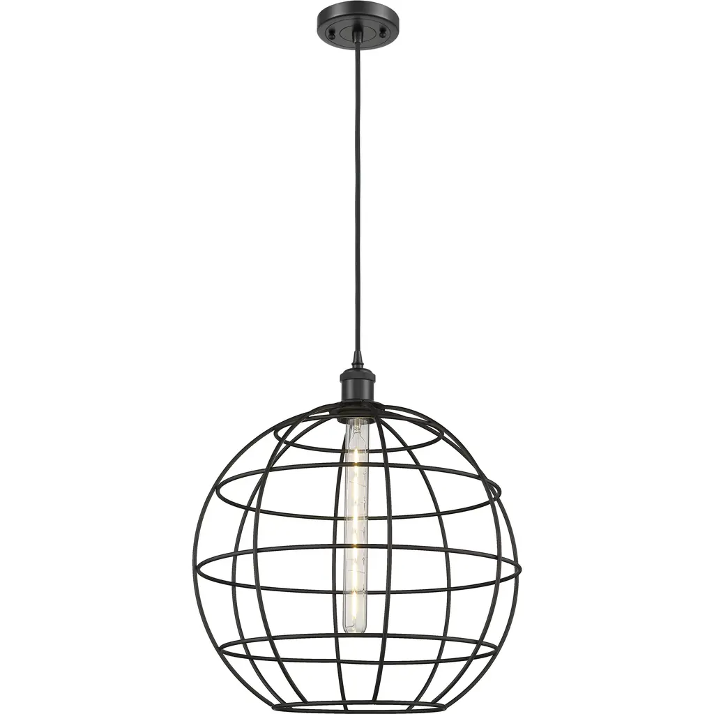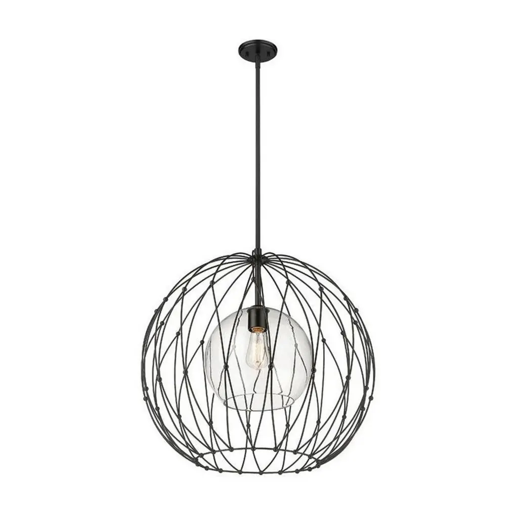 A modern take on a vintage feel, this damp-rated indoor/outdoor pendant will complement a variety of design styles from Mid-Century Modern to contemporary. The clear glass shade in a classic orb shape is surrounded by a beautifully handcrafted metal cage frame in a handsome Black finish that gives this pendant extra oomph. Room Recommendation: Bedroom/Dining Room/Dinette/Foyer/Hallway/Kids Room/Kitchen/Kitchenette/Living Room/Office Rod Length(s): 1-3, 1-6, 6-12 Dimmable: Yes Shade Included: Yes