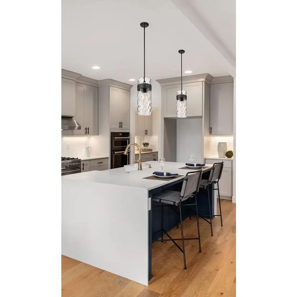 Understated elegance is the foundation of the Fontaine Collection with its bold jewelry cuff banding and thick waterglass shades with rich waves that softly diffuse the light. Available as vanity lights, pendants, and wall sconces, Fontaine fixtures take on a different style persona depending on the size and finish selected. Several sizes are offered, along with a rich array of finishes in Matte Black, Rubbed Brass, Brushed Nickel, and Polished Nickel. Room Recommendation: Bedroom/Dining Room/Dinette/Foyer/Hallway/Kids Room/Kitchen/Kitchenette/Living Room/Office Rod Length(s): 1-3, 1-6, 6-12 Dimmable: Yes Shade Included: Yes