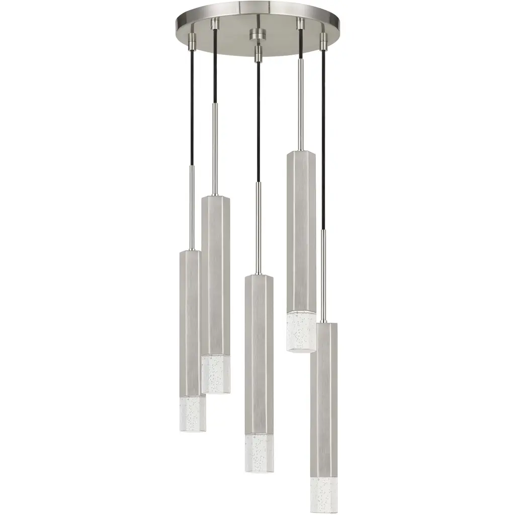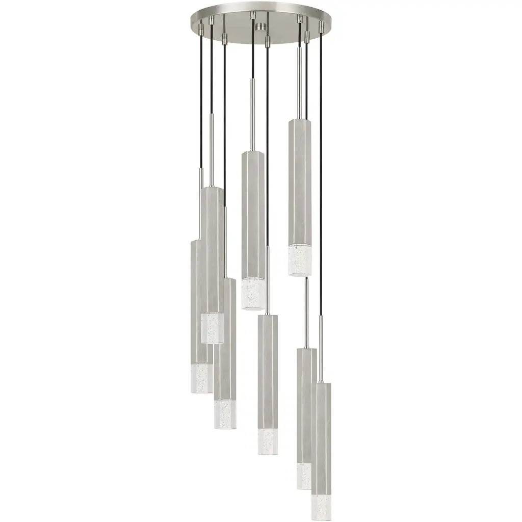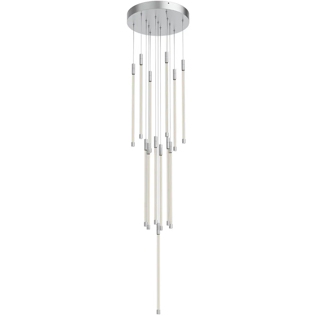 Add sophistication with the sleek and clean lines from this fourteen-light pendant light. Beautiful in a modern bathroom or hallway, the windchime-inspired silhouette dazzles with a radiant brushed nickel finish. Color Temperature: 3000K Lumens: 3360 CRI: 80 Room Recommendations: Bedroom/Dining Room/Dinette/Foyer/Hallway/Kids Room/Kitchen/Kitchenette/Living Room/Office Shade Included: Yes Cord Length: 118.00 Dimmable: Yes