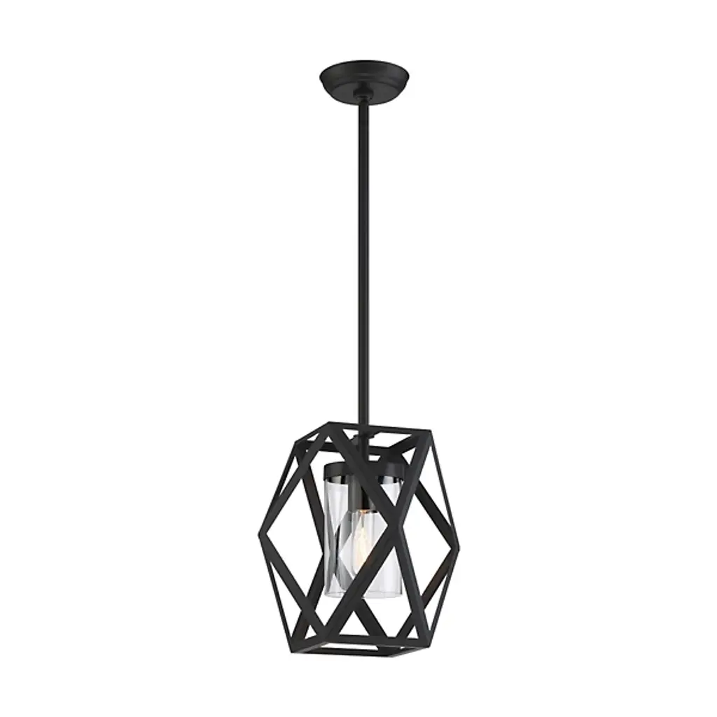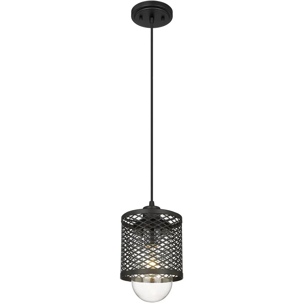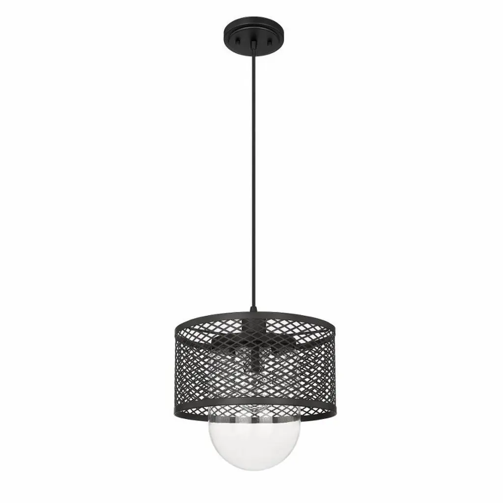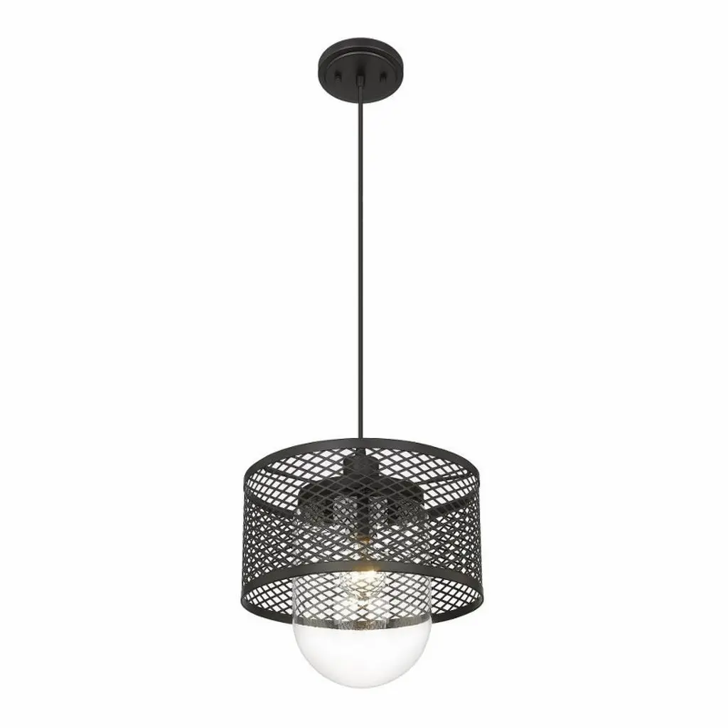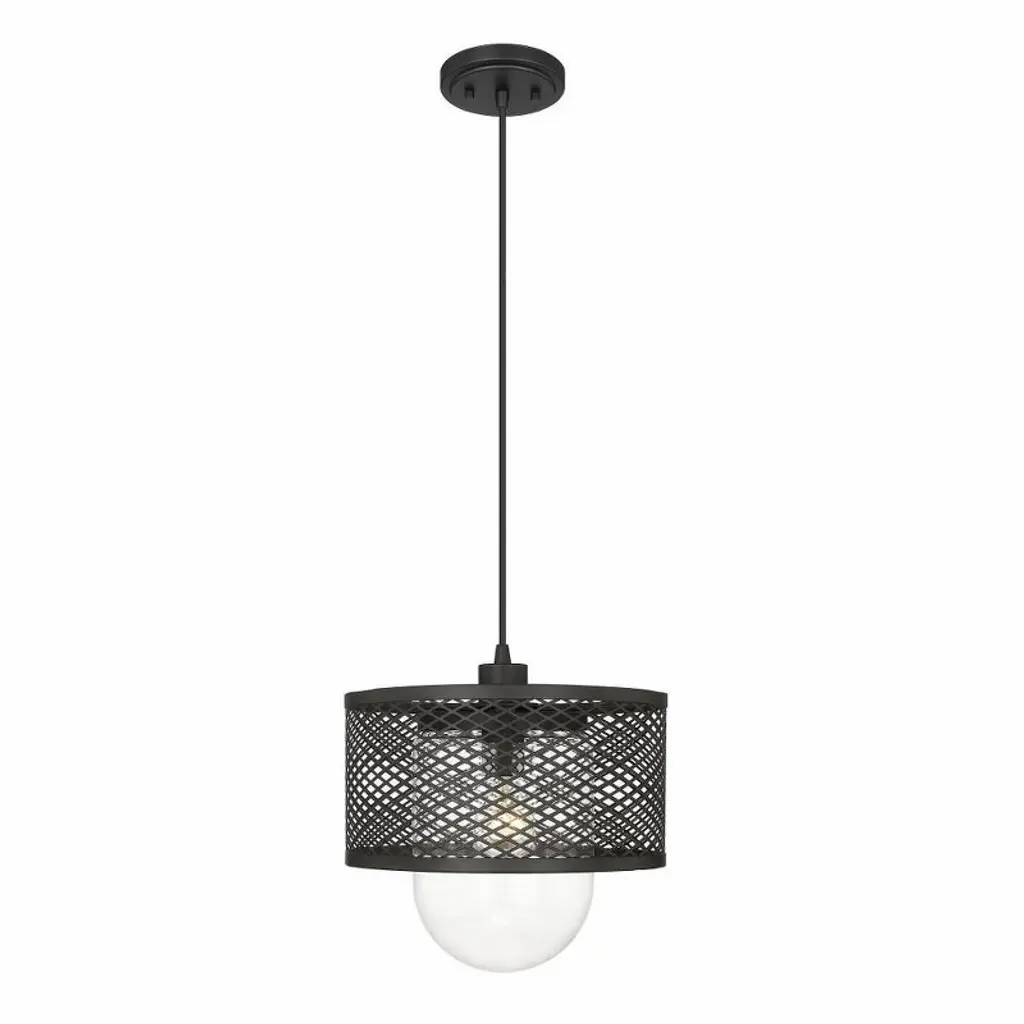 Transform kitchen islands and spacious entryway foyers into a welcoming space with this transitional single light pendant. Drop this one-light pendant into a space, suspending it from the ceiling and allowing light to scintillate walls and floors emitted from a wire mesh cage and rounded clear glass shade that expose glowing filament bulbs. Designed in a bold matte black finish, the wire cage presents a country inspired modern industrial touch that offers a sleek touch.