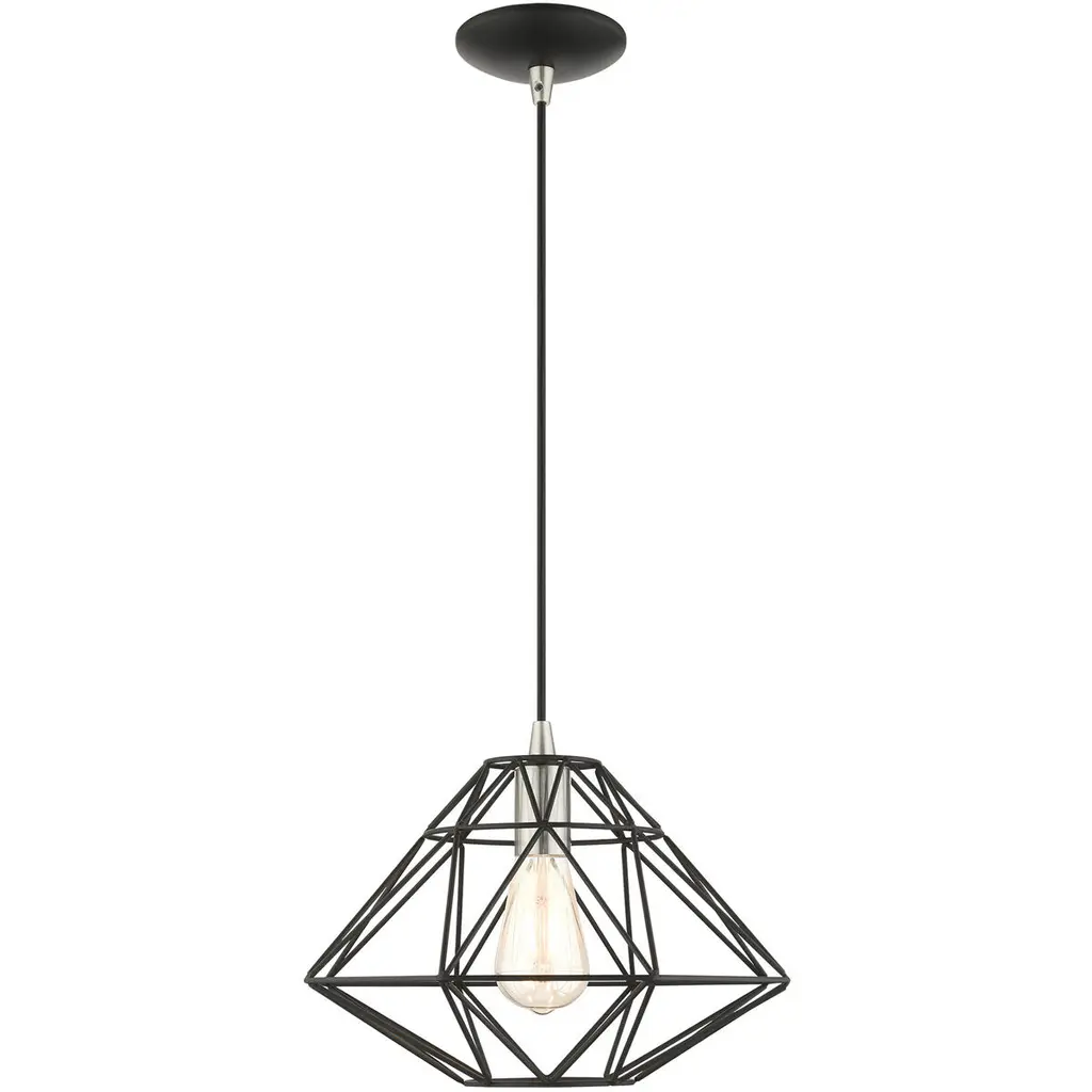 The damp-rated indoor/outdoor Orsay pendant - available in two sizes - evokes Moroccan flair with its angular, vertical shape. An airy metal cage in a Black finish encloses the glass diffuser and makes a visual design statement. Room Recommendation: Bedroom/Dining Room/Dinette/Foyer/Hallway/Kids Room/Kitchen/Kitchenette/Living Room/Office Rod Length(s): 1-3, 1-6, 6-12 Dimmable: Yes Shade Included: Yes