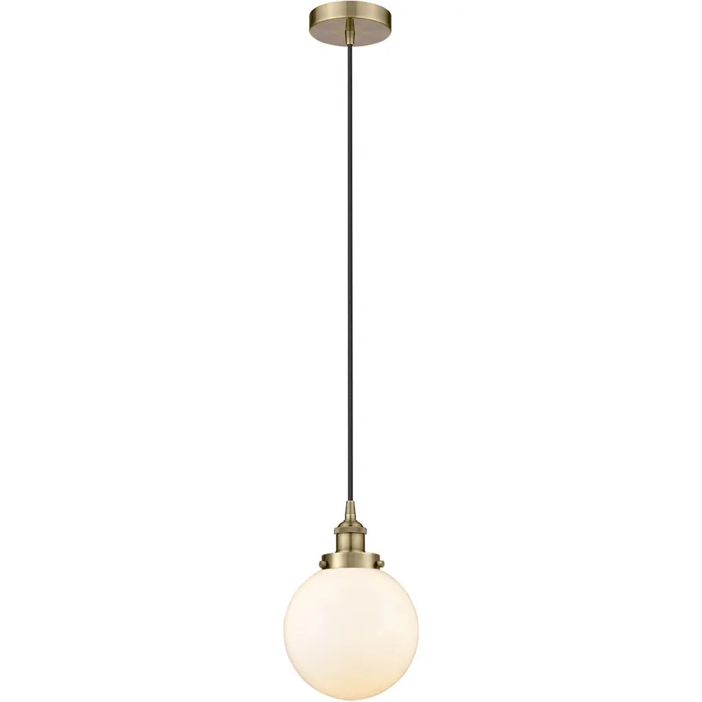 Clean, crisp lines and a slender design are the hallmarks of this one-light pendant for your home. It's fashioned with a matte black and olde brass finish and a round opal shade for the warm glow you're looking for. This elegant light is perfect for the dining room, foyer, bedroom, or home office. Room Recommendation: Bedroom/Dining Room/Dinette/Foyer/Hallway/Kids Room/Kitchen/Kitchenette/Living Room/Office Rod Length(s): 1-3, 1-6, 6-12 Dimmable: Yes Shade Included: Yes