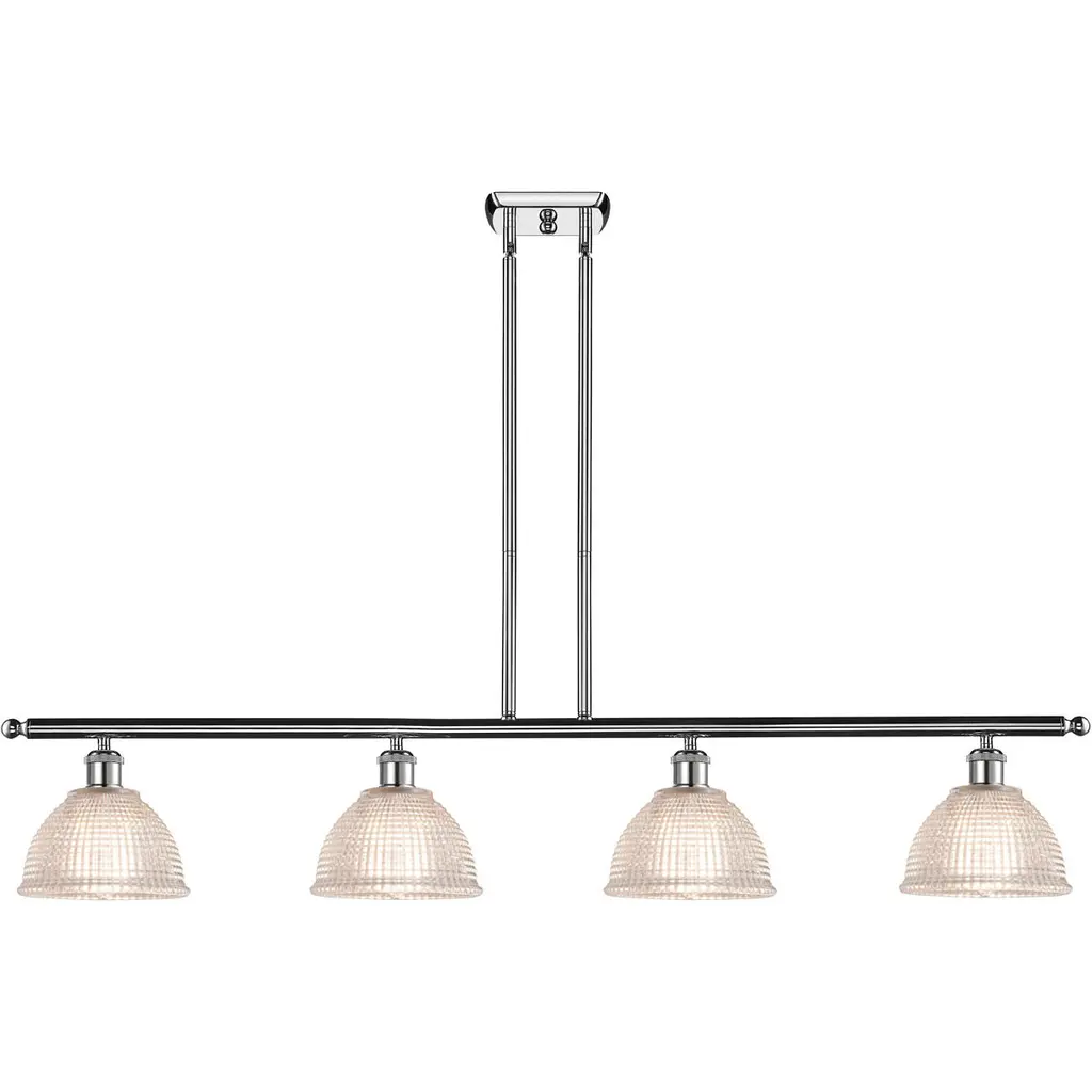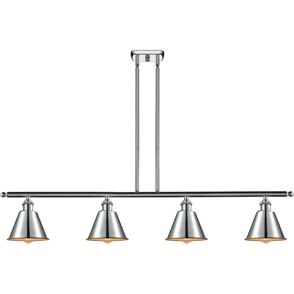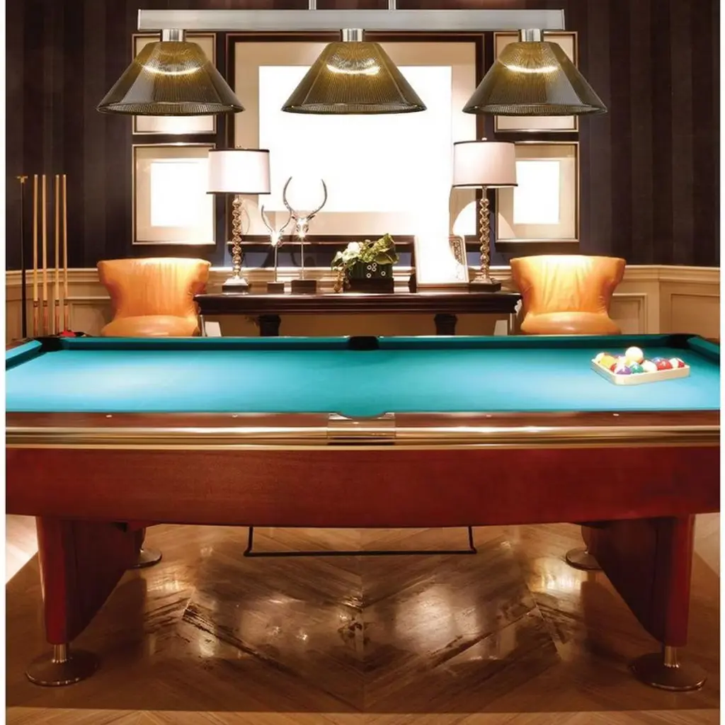 Straight line inspired detailing defines this beautiful three light fixture. Finished in brushed nickel and paired with metal brushed nickel shades, this three light fixture would be equally at home in the game room, or anywhere else in the house needing a touch of modern charm. Adjustable rods are included to ensure the perfect hanging height. Game Room/Dining Room/Kitchen/Kitchenette No. of Rods: 10 Shade Included: Yes Rod Length(s): 12.00 Dimmable: Yes