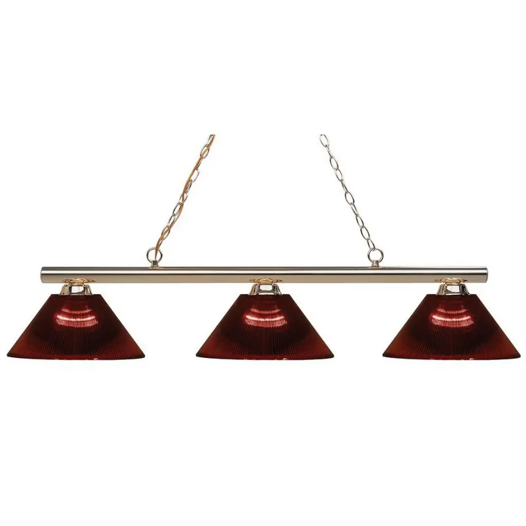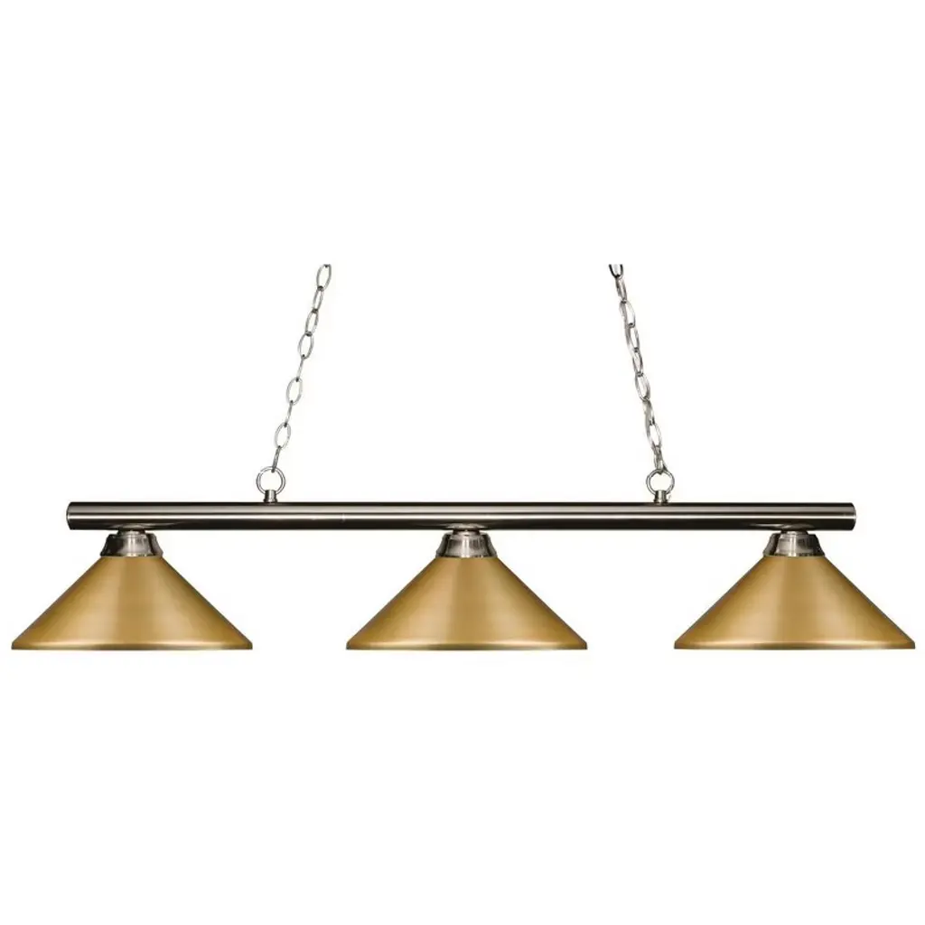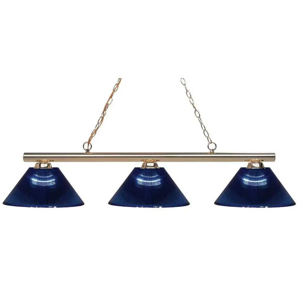 The simple styling of this three light fixture creates a classic statement. Finished in polished brass, this three light fixture uses Green Plastic shades to compliment its classic look, and 36 Inch of chain per side is included to ensure the perfect hanging height. Game Room/Dining Room/Kitchen/Kitchenette Shade Included: Yes Cord Length: 60.00 Dimmable: Yes