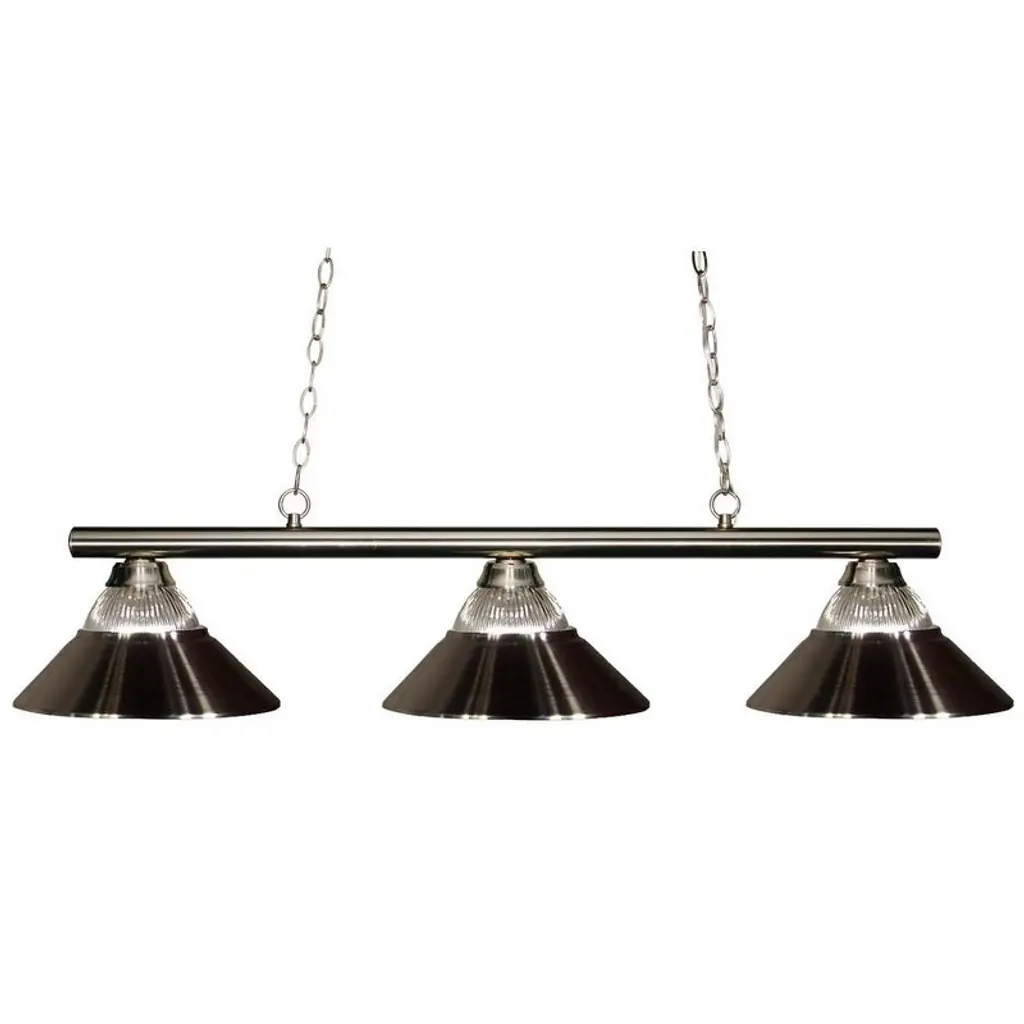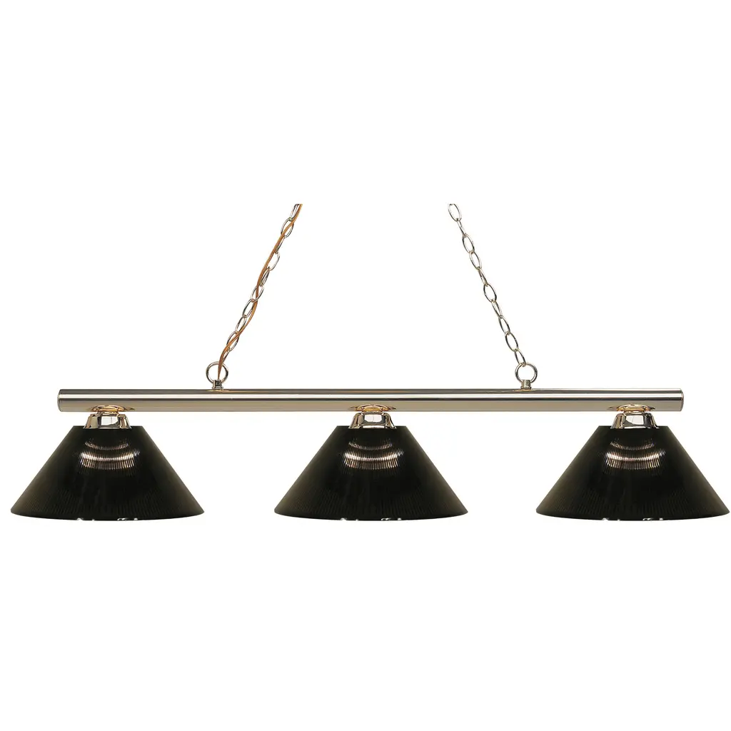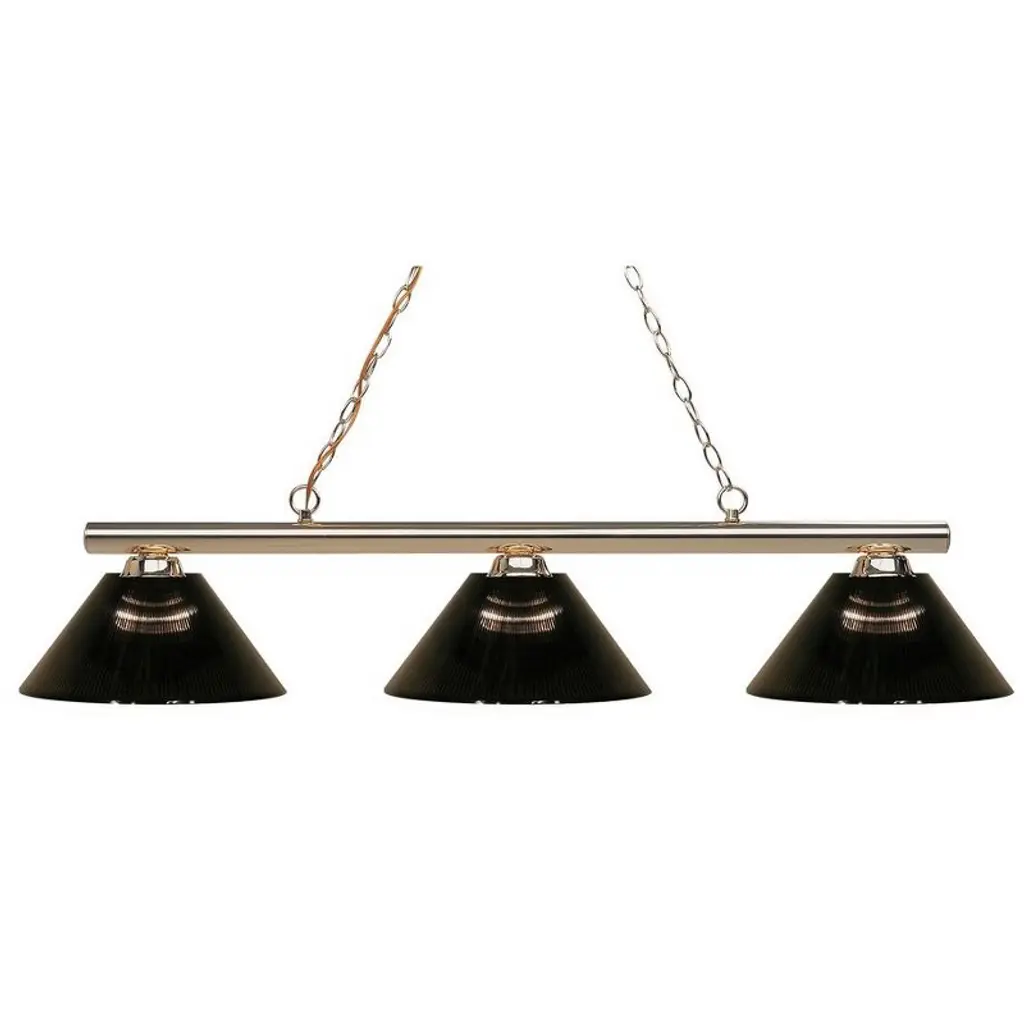 The simple styling of this three light fixture creates a classic statement. Finished in polished brass, this three light fixture uses Green Plastic shades to compliment its classic look, and 36 Inch of chain per side is included to ensure the perfect hanging height. Game Room/Dining Room/Kitchen/Kitchenette Shade Included: Yes Cord Length: 60.00 Dimmable: Yes