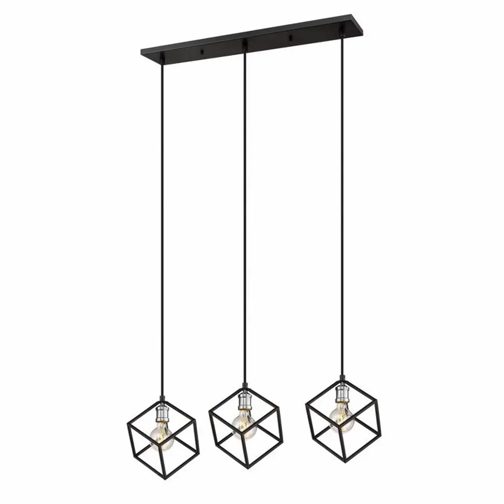 Clean lines and an eclectic modern design highlight this two-tone three-light island/billiard light for your home. It's fashioned in a bronze and olde brass finish with cube-shaped shades for a look that's contemporary yet timeless. It's a design that catches the eye in any dining room, foyer, or entertainment room. Game Room/Dining Room/Kitchen/Kitchenette Cord Length: 110.00 Dimmable: Yes