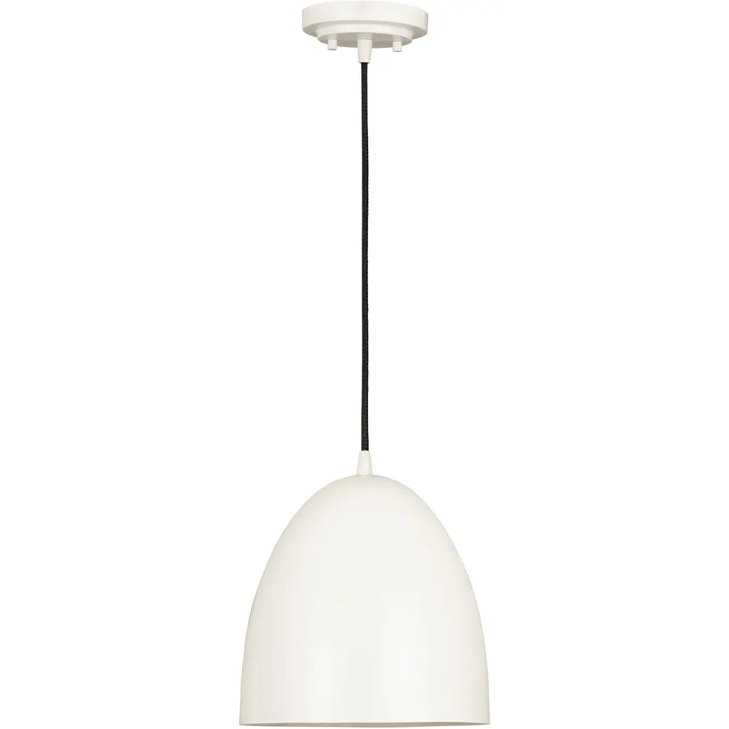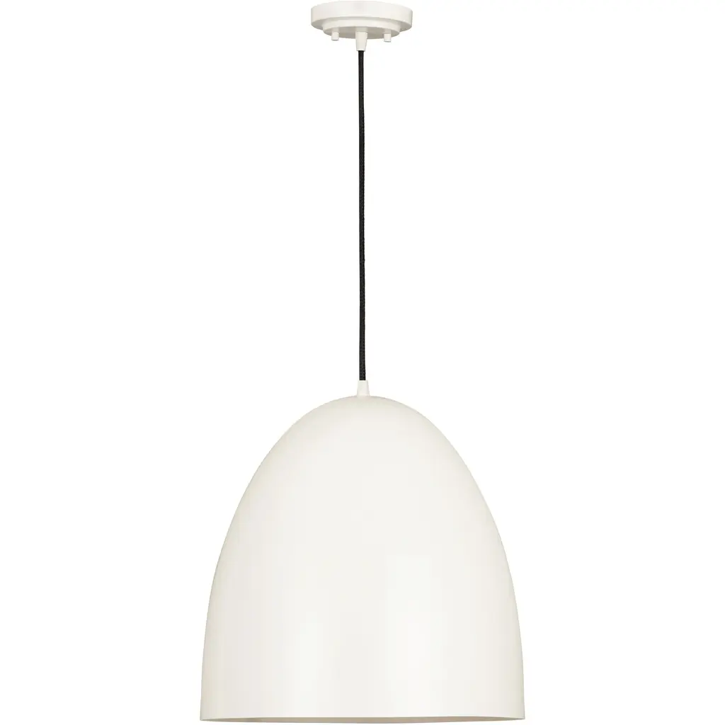 The Z Studio Dome pendant is a significantly scaled fixture that cohesively blends its characteristic domed silhouette with a beautiful finish. Its light-hearted hues allow the Z Studio Dome to be a perfect choice whether designing for farmhouse chic or a Mid-Century Modern aesthetic. It is suspended by a black braided cord with matching color canopy. Room Recommendation: Bedroom/Dining Room/Dinette/Foyer/Hallway/Kids Room/Kitchen/Kitchenette/Living Room/Office Shade Included: Yes Cord Length: 110.00 Dimmable: Yes