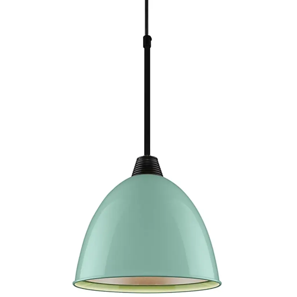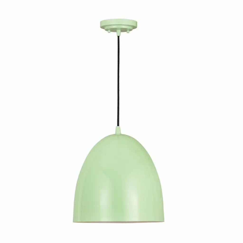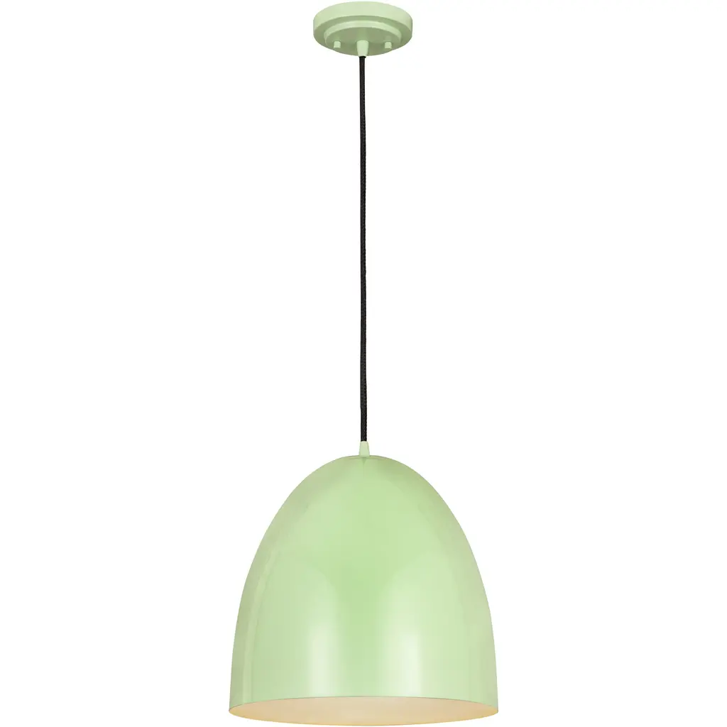 The Z Studio Dome pendant is a significantly scaled fixture that cohesively blends its characteristic domed silhouette with a beautiful finish. Its light-hearted hues allow the Z Studio Dome to be a perfect choice whether designing for farmhouse chic or a Mid-Century Modern aesthetic. It is suspended by a black braided cord with matching color canopy. Room Recommendation: Bedroom/Dining Room/Dinette/Foyer/Hallway/Kids Room/Kitchen/Kitchenette/Living Room/Office Shade Included: Yes Cord Length: 110.00 Dimmable: Yes