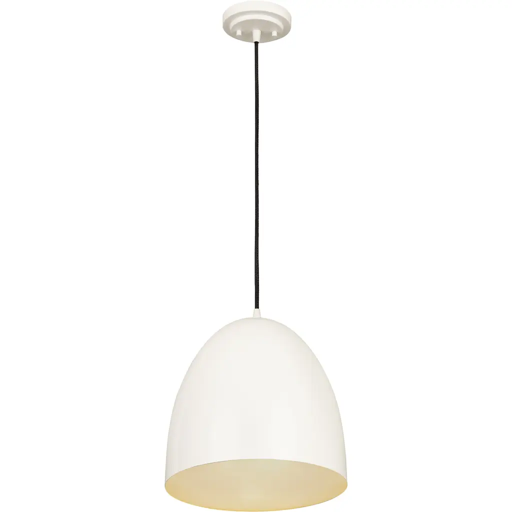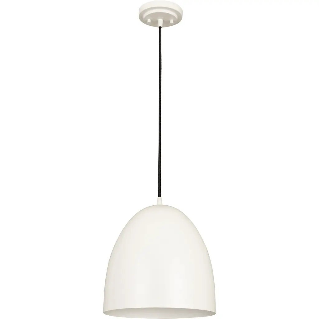 Indulge a love of farmhouse flavor with an updated, modern touch. The Z Studio Dome pendant creates a classic look with a whimsical rounded dome silhouette and construction of bright matte white finish iron. This one-light pendant features a matching matte white canopy and a braided black cord to change up its aesthetic and add a casual look. Whether shooting for a storied vintage feel or an updated Mid-Century Modern motif, this standout pendant delivers a light aesthetic to kitchens, dining areas, and entryways.