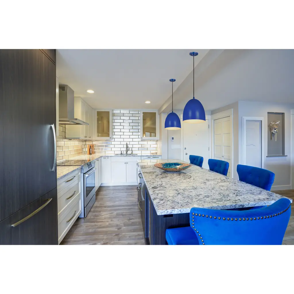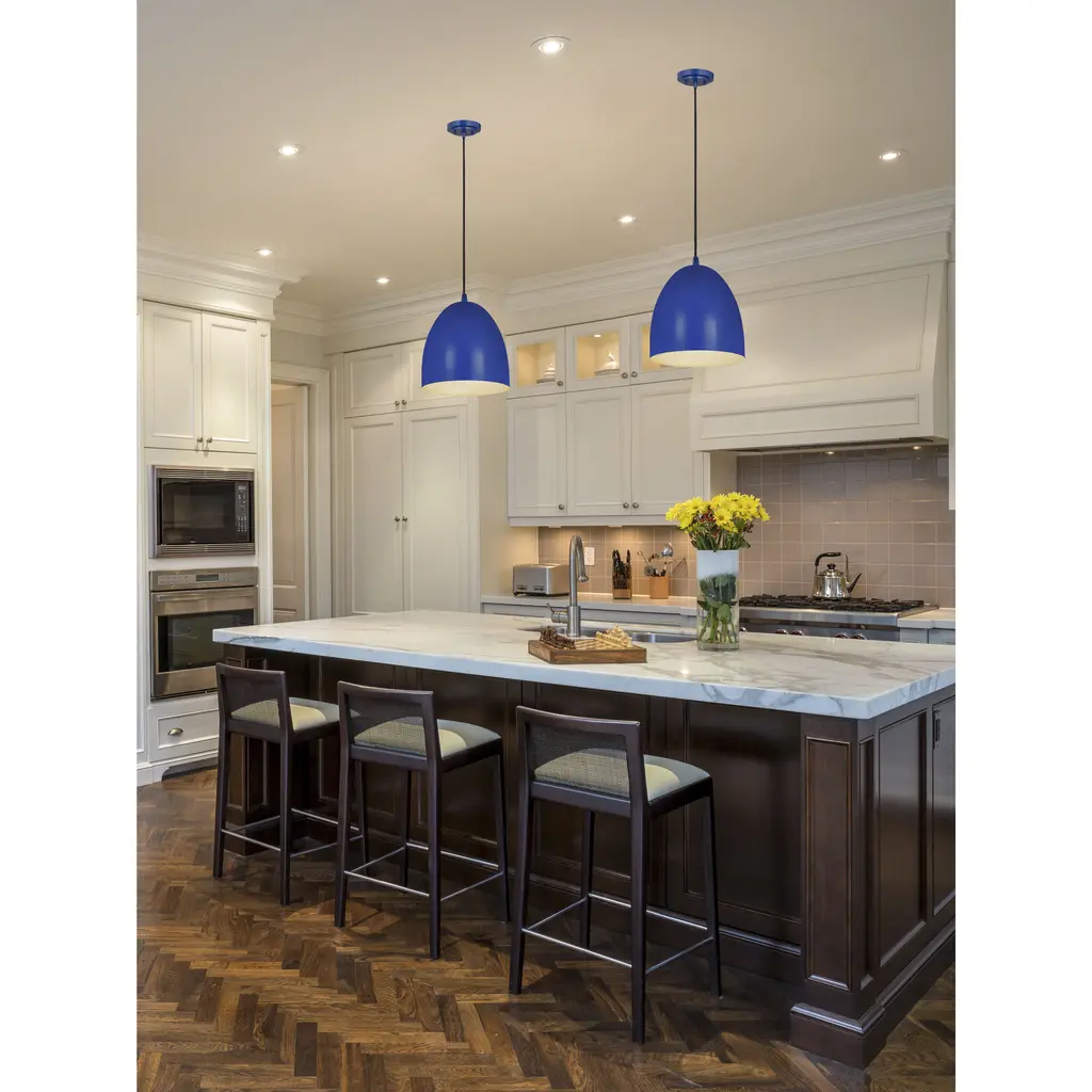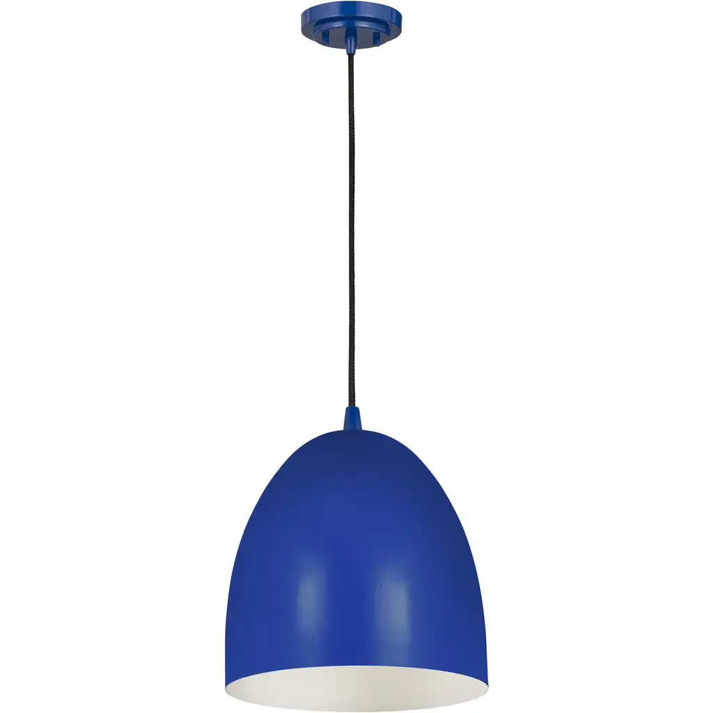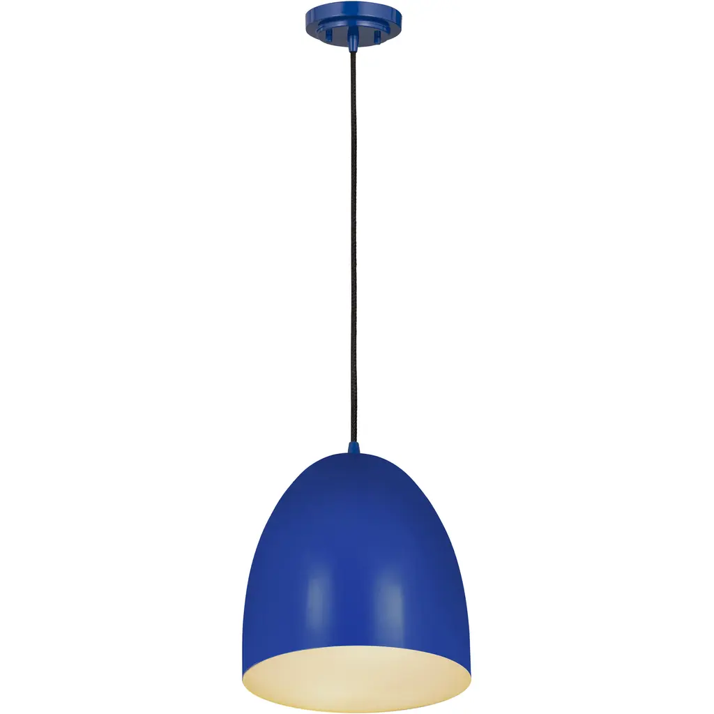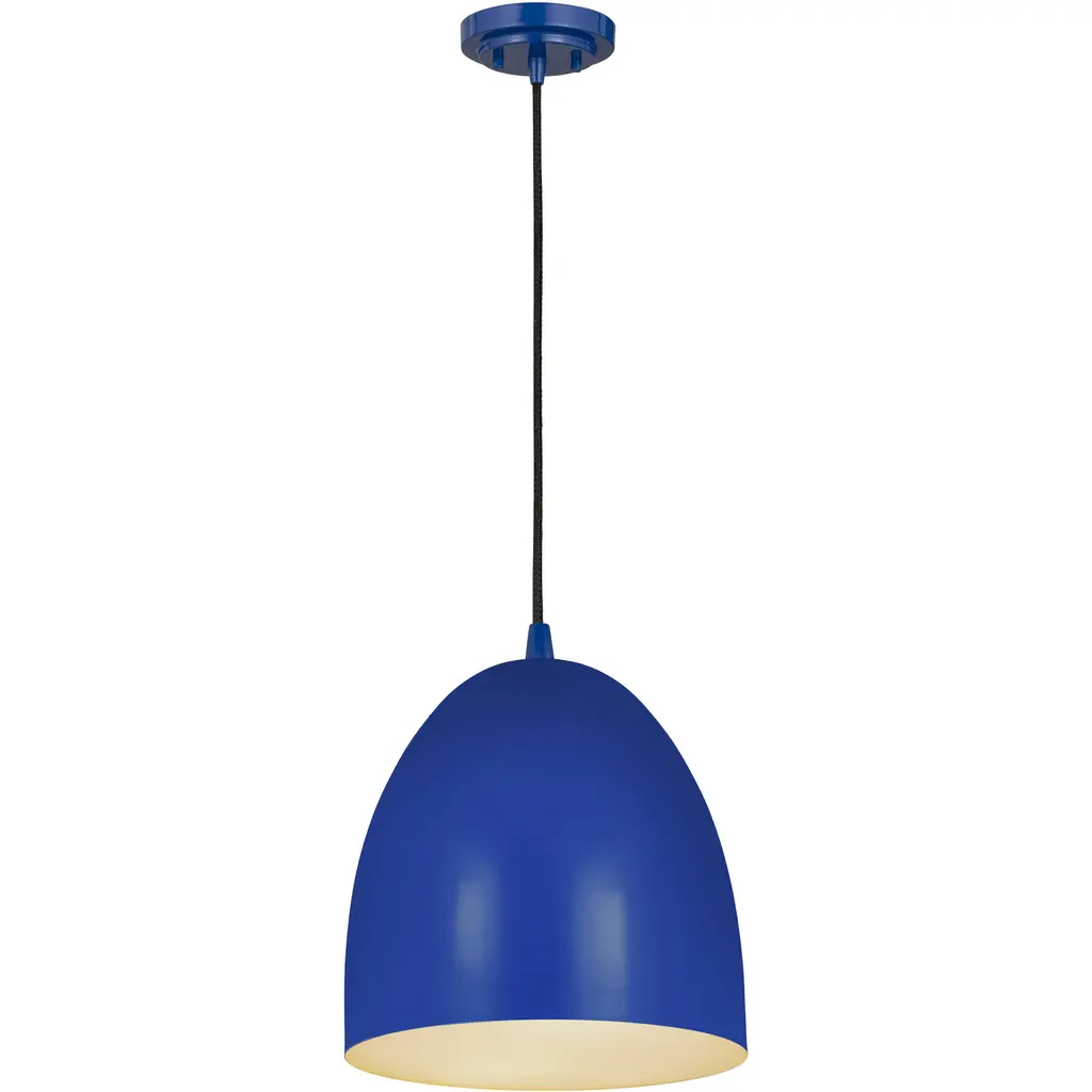 Solve lighting challenges in compact spaces with a cheeky, Mid-Century Modern style fixture that becomes part of a design scheme. The Z Studio Dome pendant brings targeted lighting to casual nooks and reading spaces, bedrooms and kitchens. With a farmhouse feel, this versatile dome-style pendant offers a bright blue finish iron shade and matching canopy, as a charming braided black cord adds finishing touches.