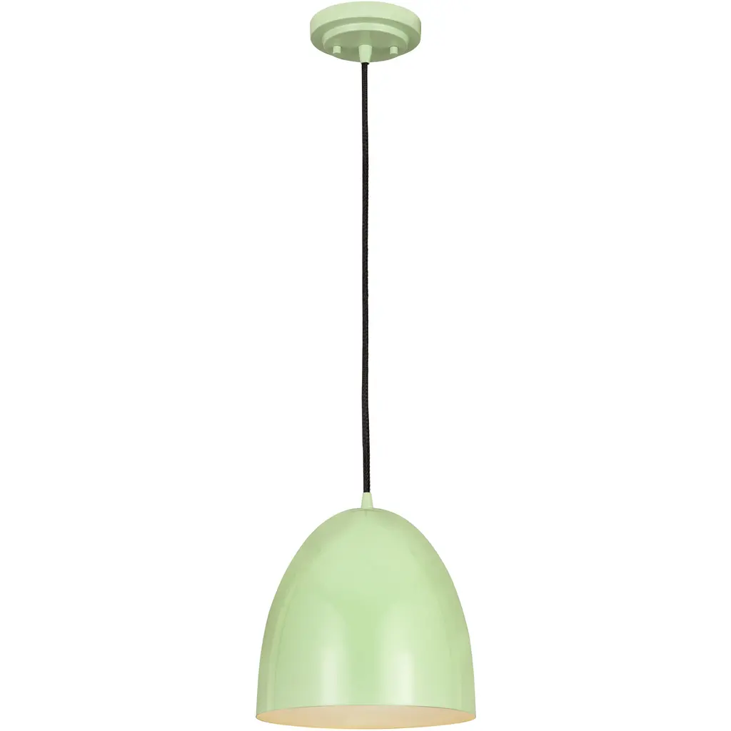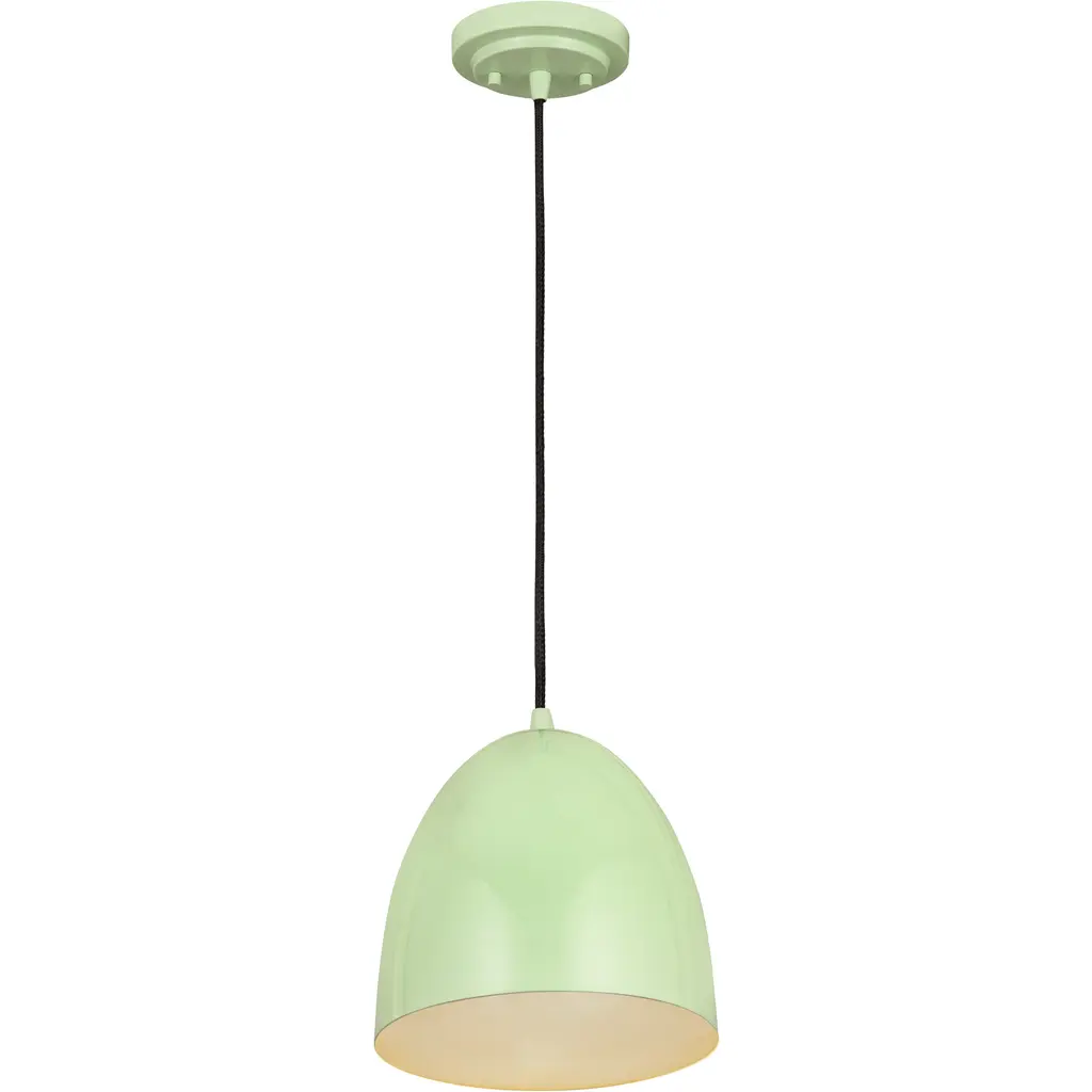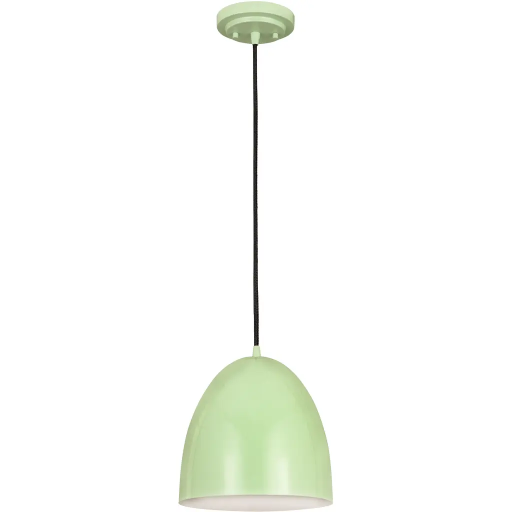 Solve lighting challenges in compact spaces with a cheeky, Mid-Century Modern style fixture that becomes part of a design scheme. The Z Studio Dome pendant brings targeted lighting to casual nooks and reading spaces, bedrooms and kitchens. With a farmhouse feel, this versatile dome-style pendant offers a soft mint finish iron shade and matching canopy, as a charming braided black cord adds finishing touches.