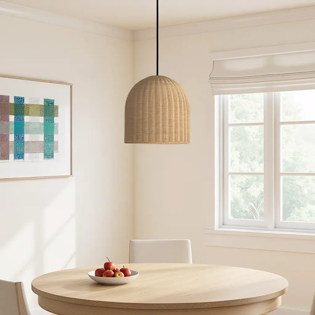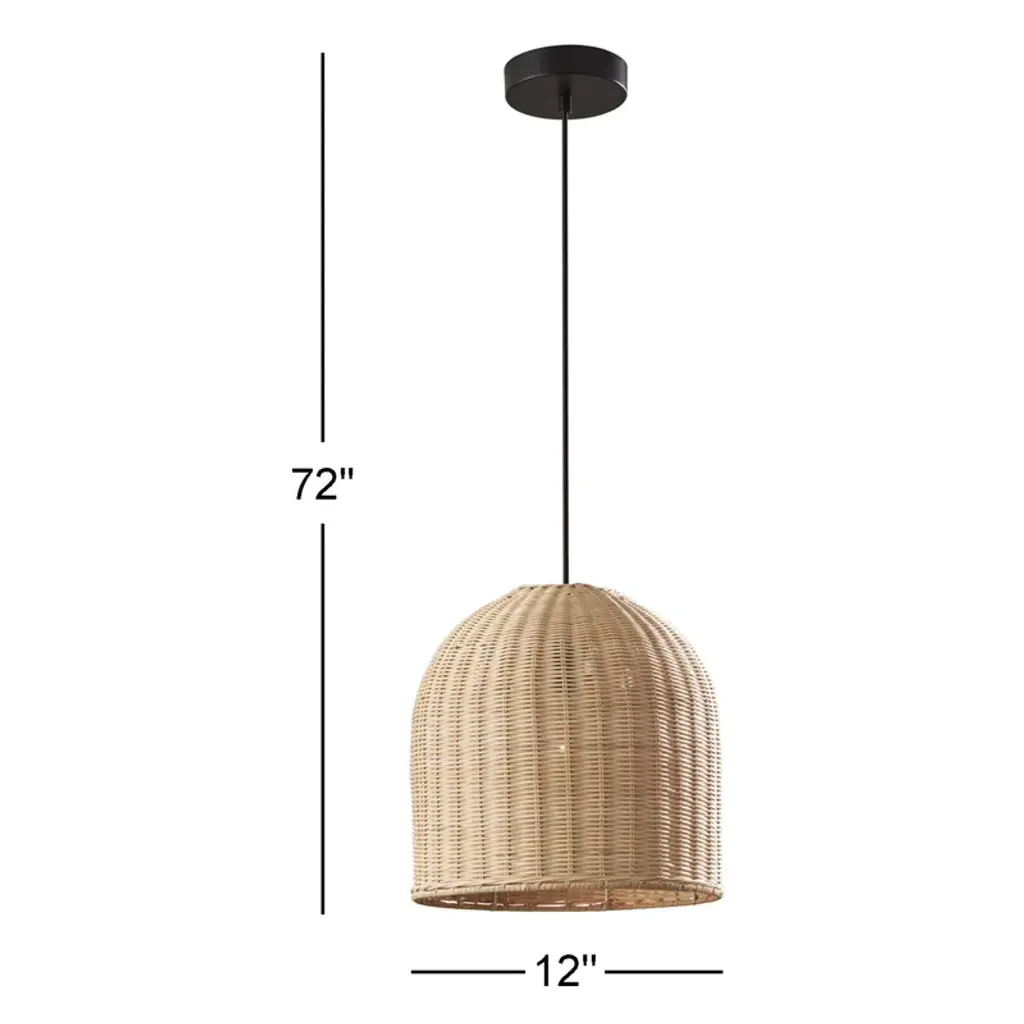 Elevate your space with this single-light pendant, showcasing a dome-shaped rattan shade that brings natural warmth and texture to your home. The adjustable length and compatibility with sloped ceilings make it a versatile choice for any room. Crafted with a solid brass metal frame, this pendant is designed for dry locations and requires a standard E26 bulb (not included) to cast a cozy, ambient glow. To keep it looking fresh, simply wipe it down with a clean, dry cloth.