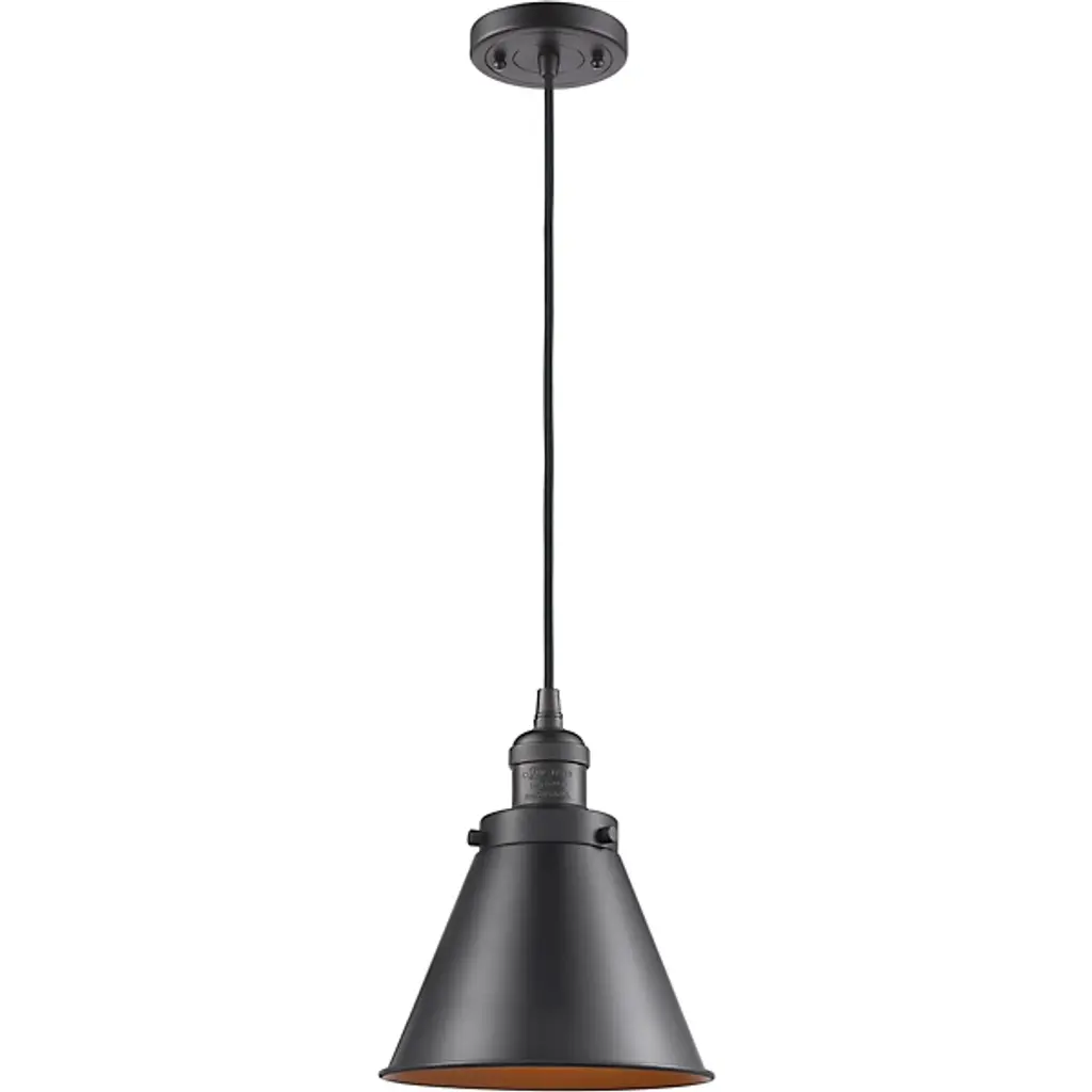 The Zachary Corded Mini Pendant by Alder & Ore has a crisp, contemporary feel that is accented with some minimal hardware detailing for a thoughtful touch. Suspended from a round canopy by a single stem, this design features a smooth, conical shade that a light socket peeks out above. Focusing an even layer of illumination down onto spaces below it, this mini pendant works well in a small area looking for a bright accent or paired up to balance out a larger space to make an impact.