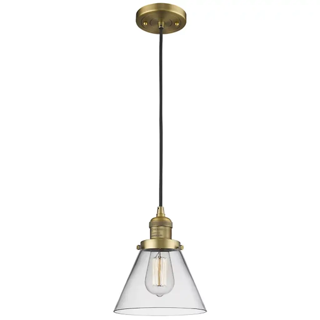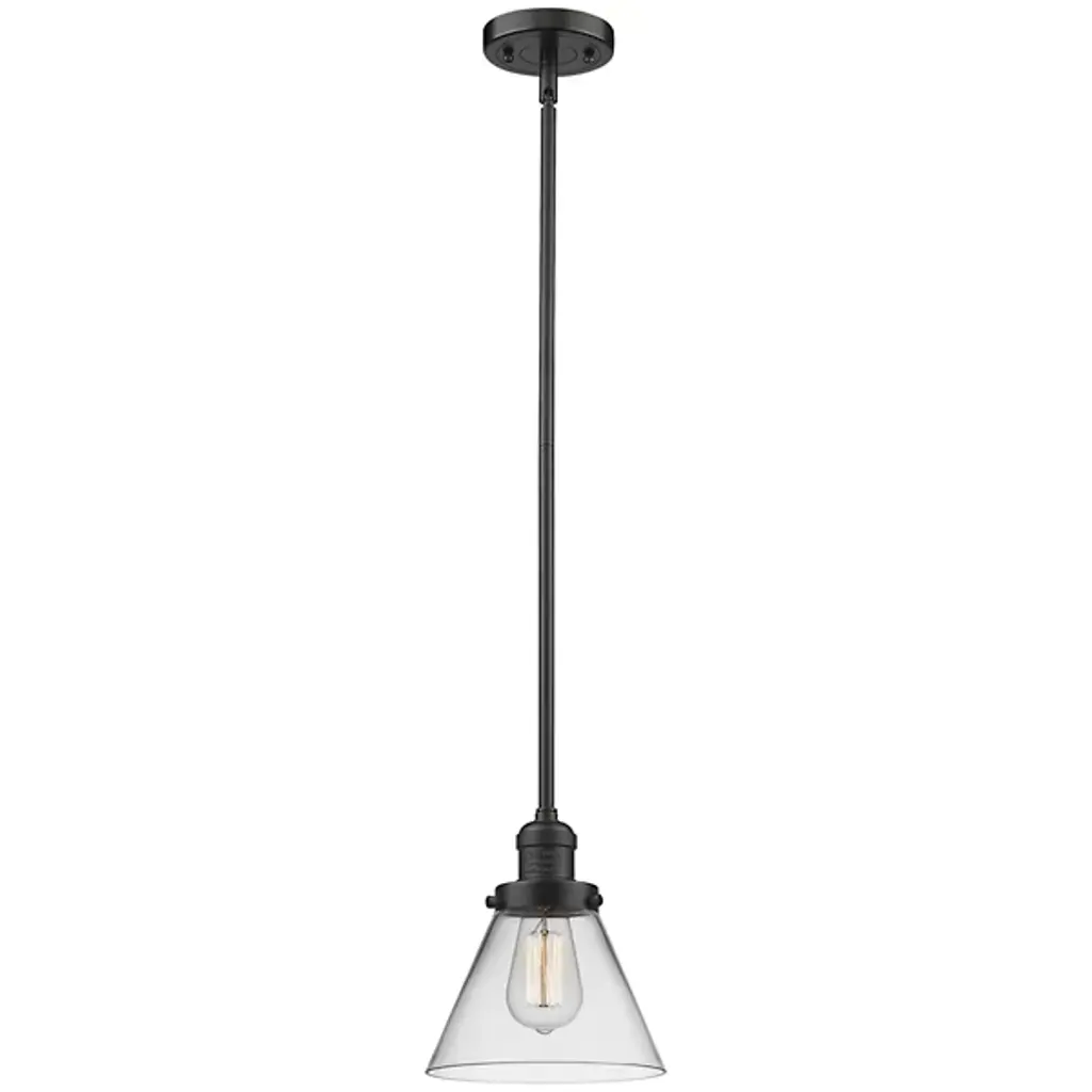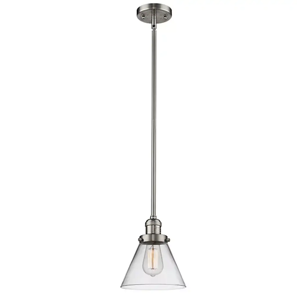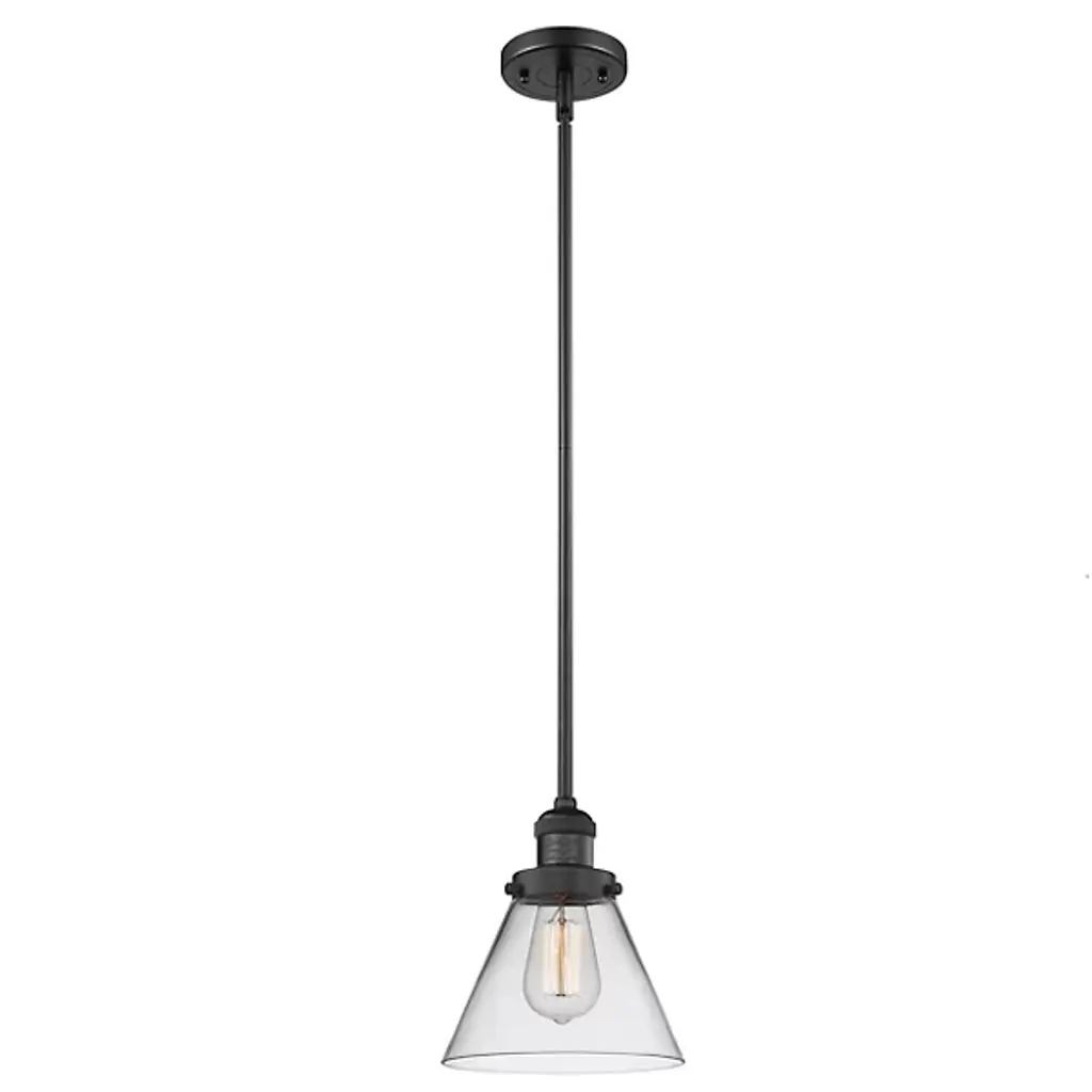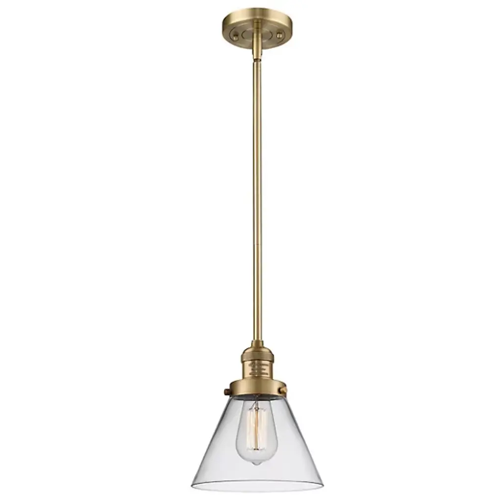 The Zachary Glass Pendant by Alder & Ore is a clean and contemporary design that makes a bright statement. Small but mighty, this little pendant shines as a conical glass shade allows a mix of ambient and downlight to spill into a space. Dressed up with some grommet detailing, a metal top and single downrod supports this piece, creating a simple silhouette that mixes and matches in a range of environments.
