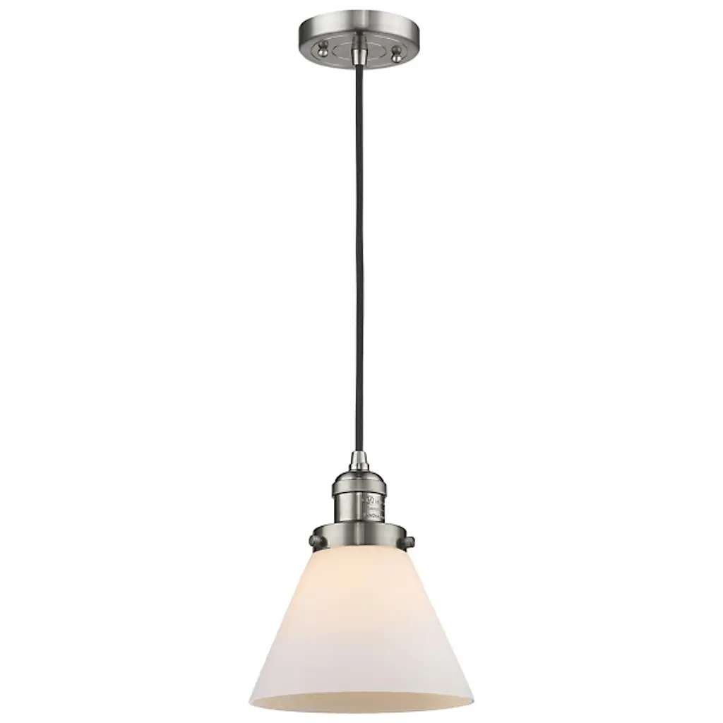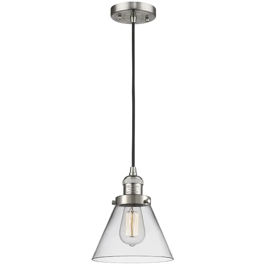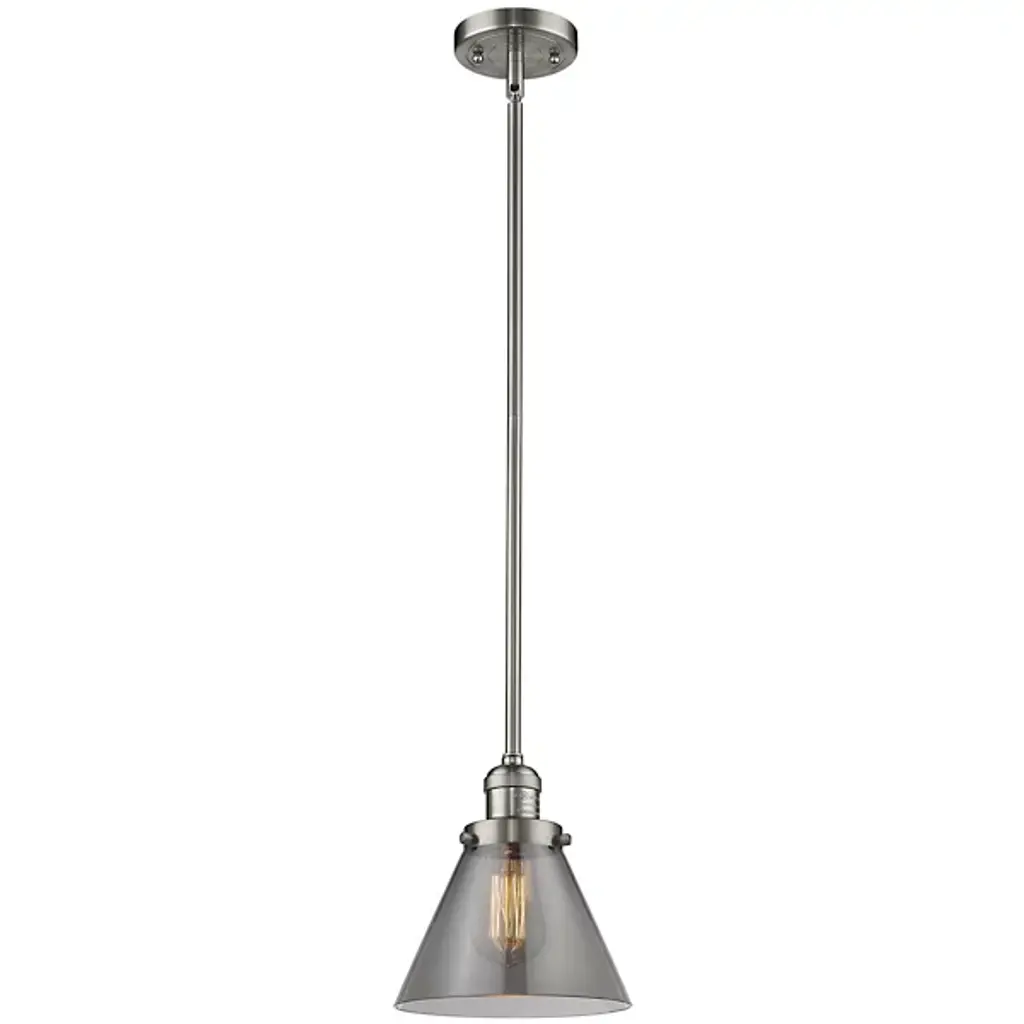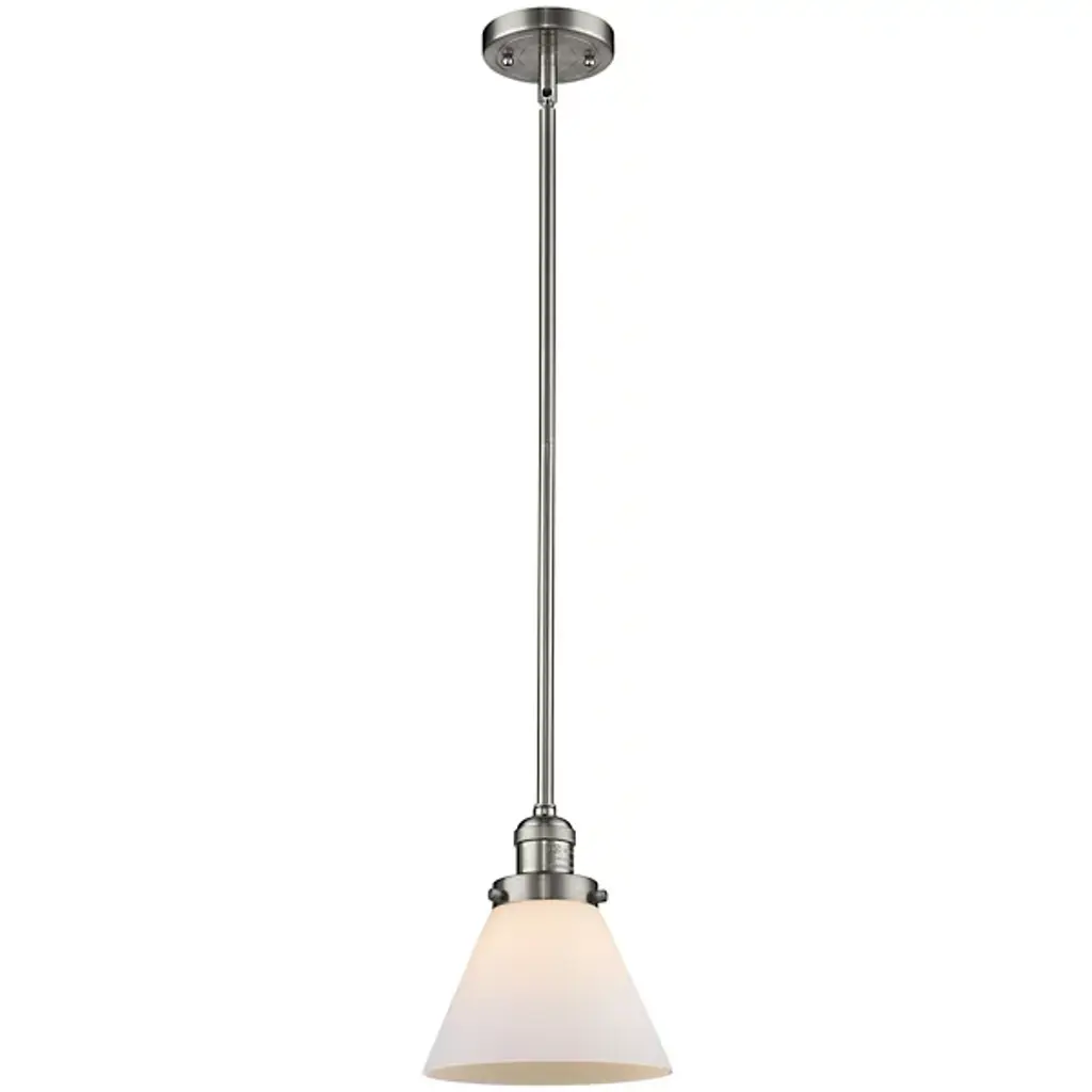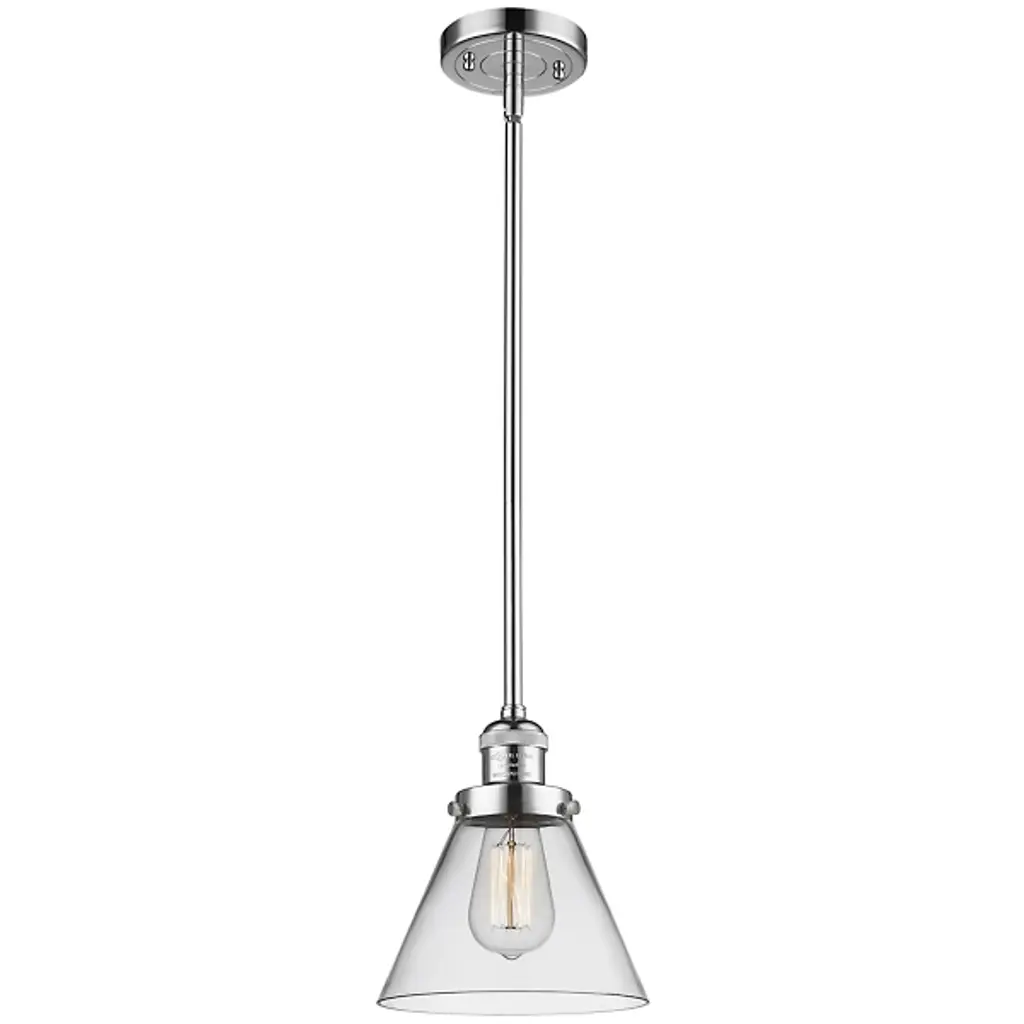 The Zachary Glass Pendant by Alder & Ore is a clean and contemporary design that makes a bright statement. Small but mighty, this little pendant shines as a conical glass shade allows a mix of ambient and downlight to spill into a space. Dressed up with some grommet detailing, a metal top and single downrod supports this piece, creating a simple silhouette that mixes and matches in a range of environments.