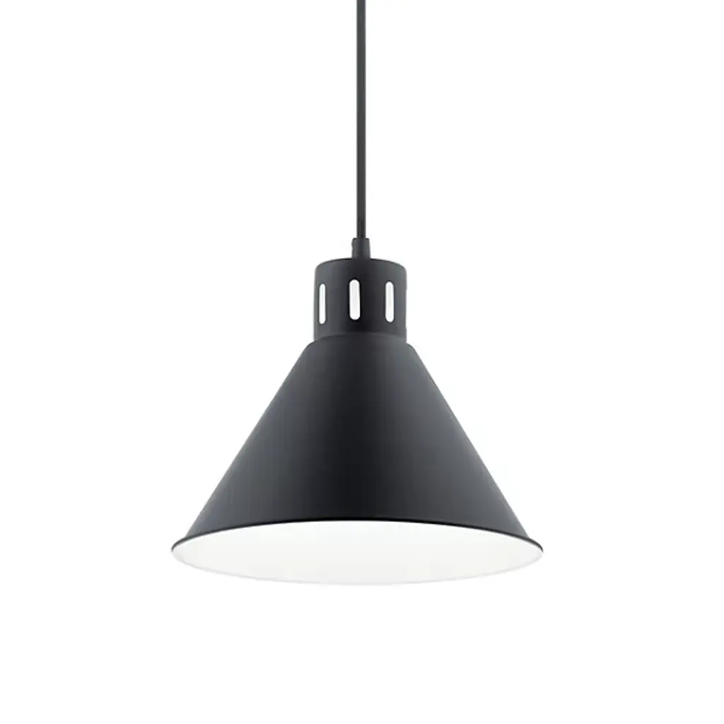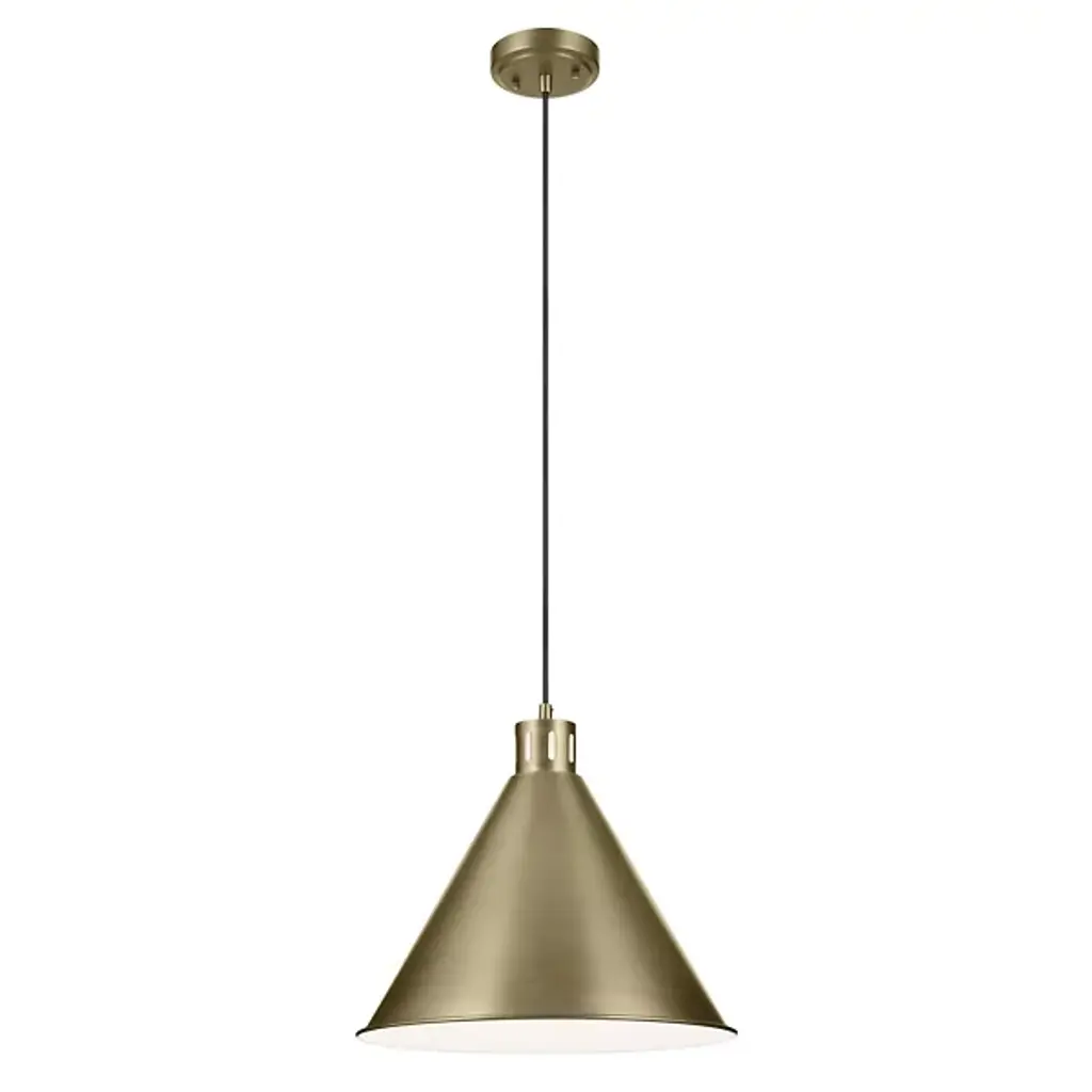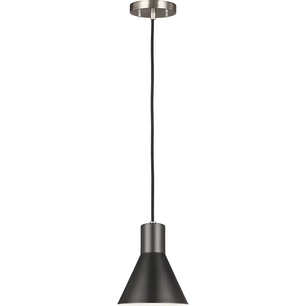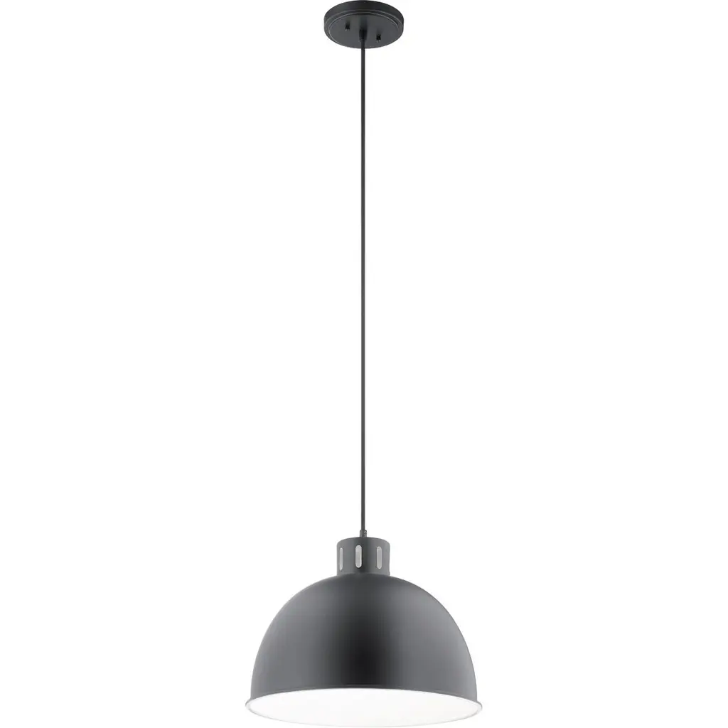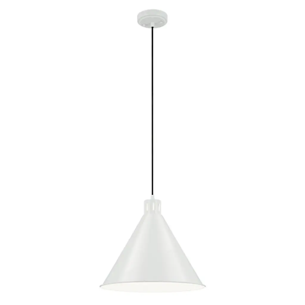 Complete your contemporary décor story with the Zailey Cone Pendant by Kichler. A circular canopy sends a thin cord to a conical shade made of steel. A single incandescent bulb rests inside the tapered shade, sending focused downlight over its environment. A simple silhouette makes this piece adaptable enough to complement a wide range of interiors, while its vented top and vintage-inspired silhouette lend a more industrial quality to the space.