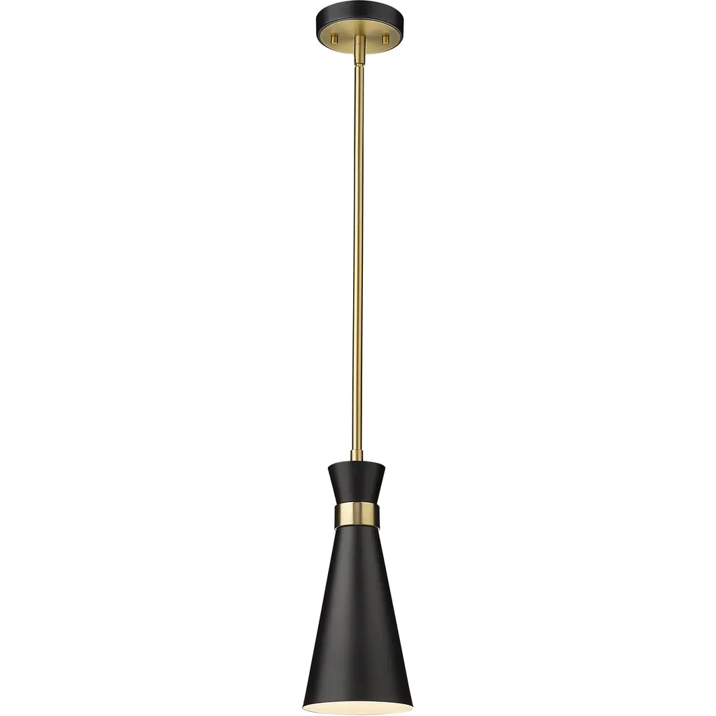 Complete your contemporary décor story with the Zailey Cone Pendant by Kichler. A circular canopy sends a thin cord to a conical shade made of steel. A single incandescent bulb rests inside the tapered shade, sending focused downlight over its environment. A simple silhouette makes this piece adaptable enough to complement a wide range of interiors, while its vented top and vintage-inspired silhouette lend a more industrial quality to the space.