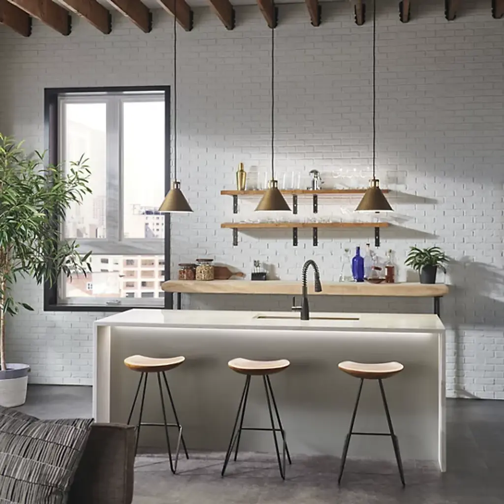 Complete your contemporary décor story with the Zailey Cone Pendant by Kichler. A circular canopy sends a thin cord to a conical shade made of steel. A single incandescent bulb rests inside the tapered shade, sending focused downlight over its environment. A simple silhouette makes this piece adaptable enough to complement a wide range of interiors, while its vented top and vintage-inspired silhouette lend a more industrial quality to the space.