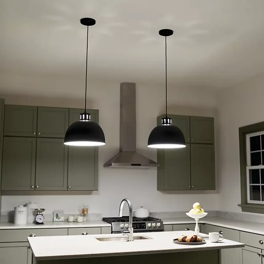 Bring bright light and classic style to your home with the Zailey Pendant by Kichler. A circular canopy sends a thin cord downward to a dome-shaped metal shade. A single incandescent bulb is nestled within the shade, casting a focused downward light perfect for placement above countertops or tables. A white interior enhances its light, creating a welcoming atmosphere while providing a simple and sophisticated visual accent for the room.