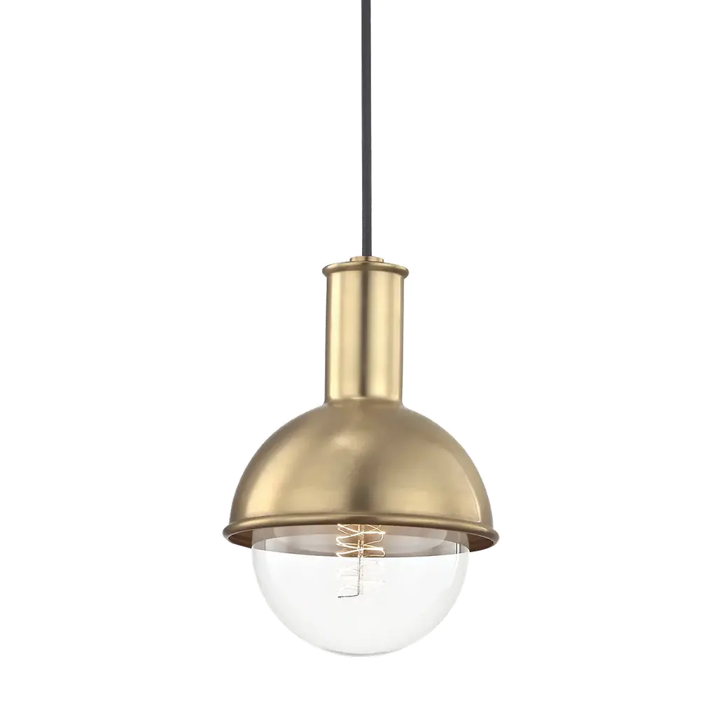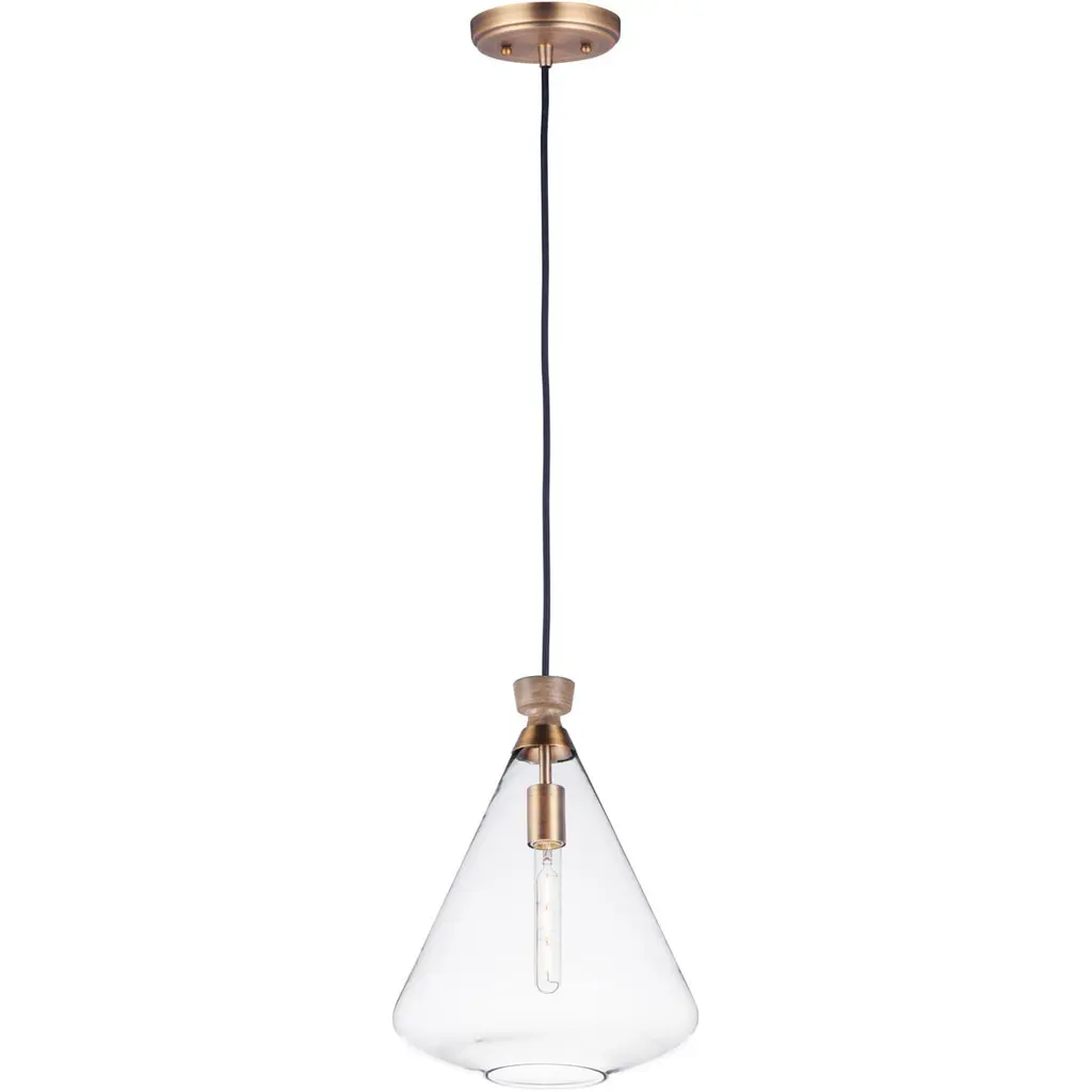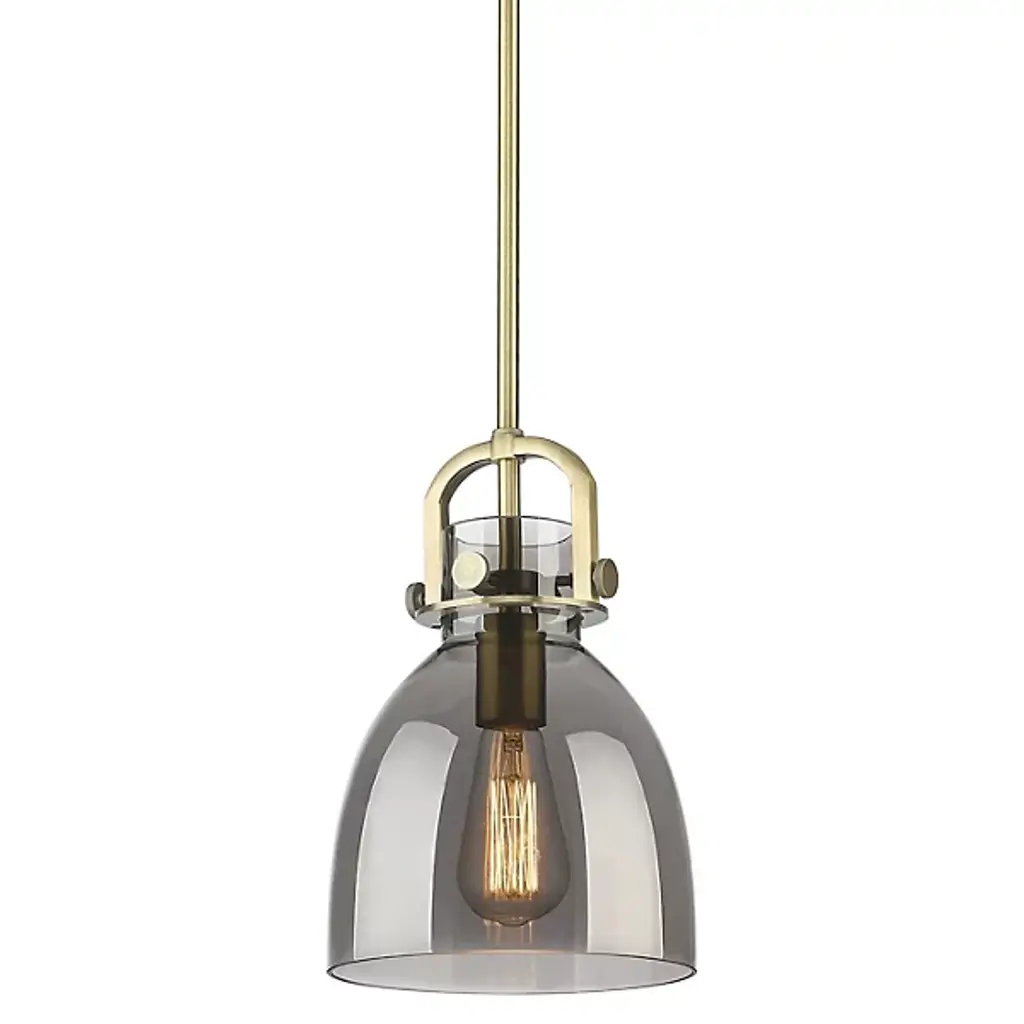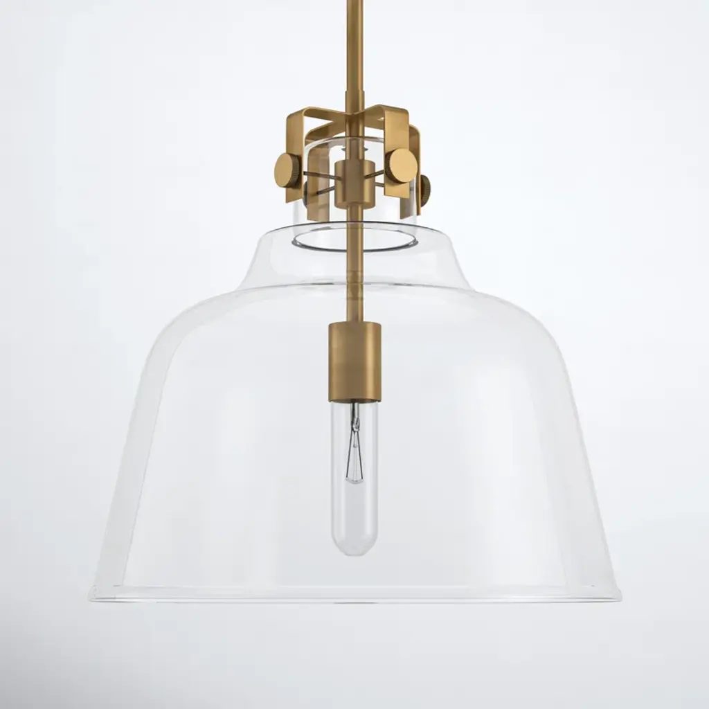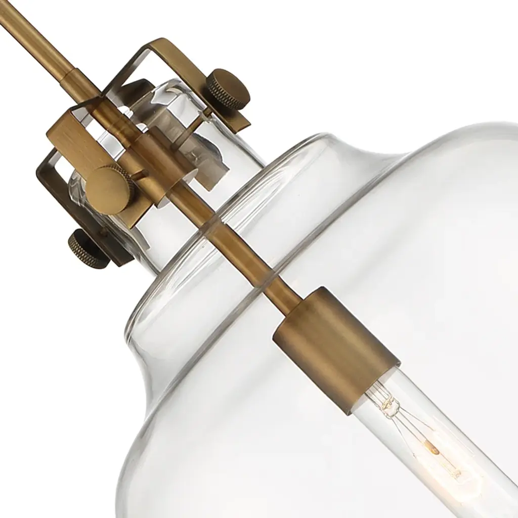 This single-light pendant has the vintage appeal of a flea-market-find with its satin brass finish and standout silhouette. It's crafted from hand-forged steel, and it features a clear glass dome around one T4 bulb (sold separately). This hard-wired fixture hangs from an adjustable rod, letting you choose the right height for your space. Plus, it's compatible with a sloped-ceiling adapter and works with a dimmer switch to let you set the mood just right.