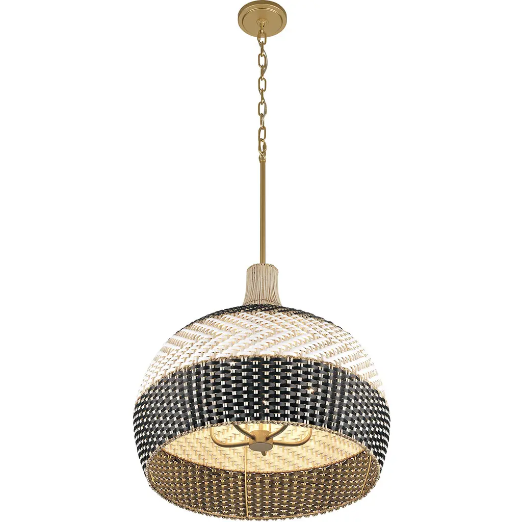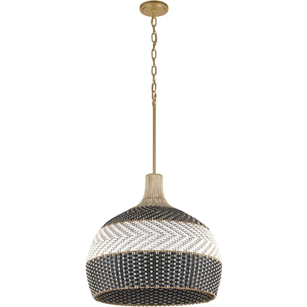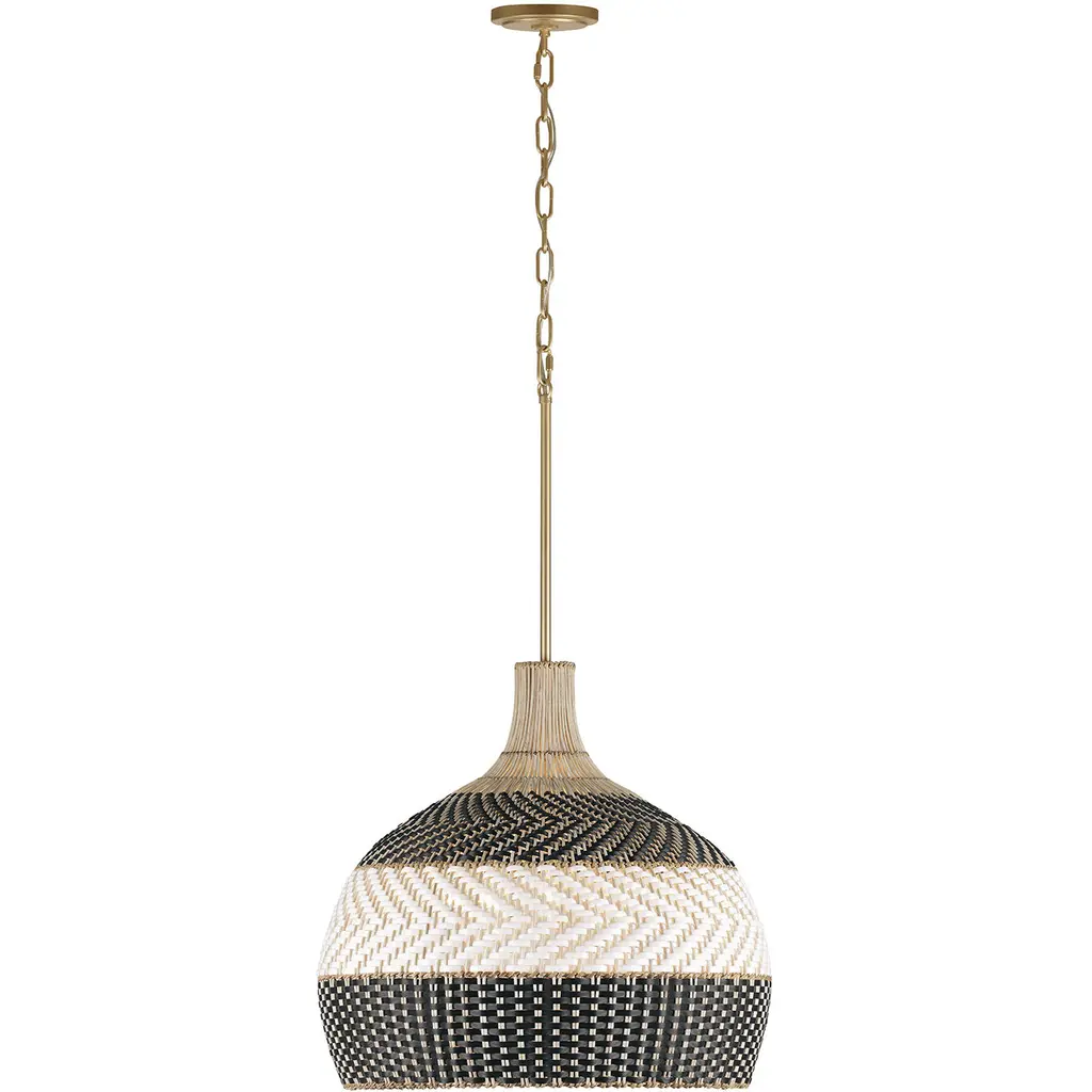The Zanzibar Collection is an embodiment of laid-back luxe and thoughtful simplicity. By marrying the natural textures of natural rattan with white and/or black lanyard, the fixture introduces a striking color palette with a soft gold finish that instantly brings comfort and style to a living space Handcrafted with precision, the intricate weave introduces texture and depth to your décor. Whether suspended over a breakfast nook or in pairs above a kitchen island, the Zanzibar exudes an earthy, elegant charm that brings an artisanal touch to your decor.