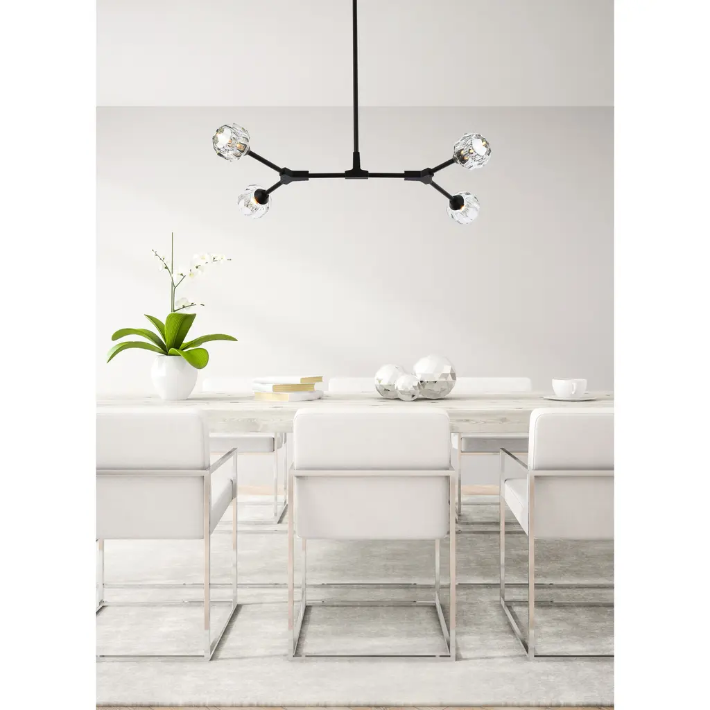 Crafted from iron metal and crystal, it features a round ceiling canopy, a hanging rod of 46 inch long, and arms extended with a solid K9 crystal ball from rods at all angles for a modern and linear look. Each 20W G9 bulb ( not included) is diffused by a faceted clear crystal ball giving the fixture a touch of industrial and glam inspiration. This work of art will add an artful focal point to your entryway, dining room, kitchen, or office. Evoking a sophisticated and timeless aesthetic to any space and will be an instant conversation started with its finely faceted crystal sphere which is polished by hand to reflect and refract light. Available in three different finishes in gold, chrome, and black.