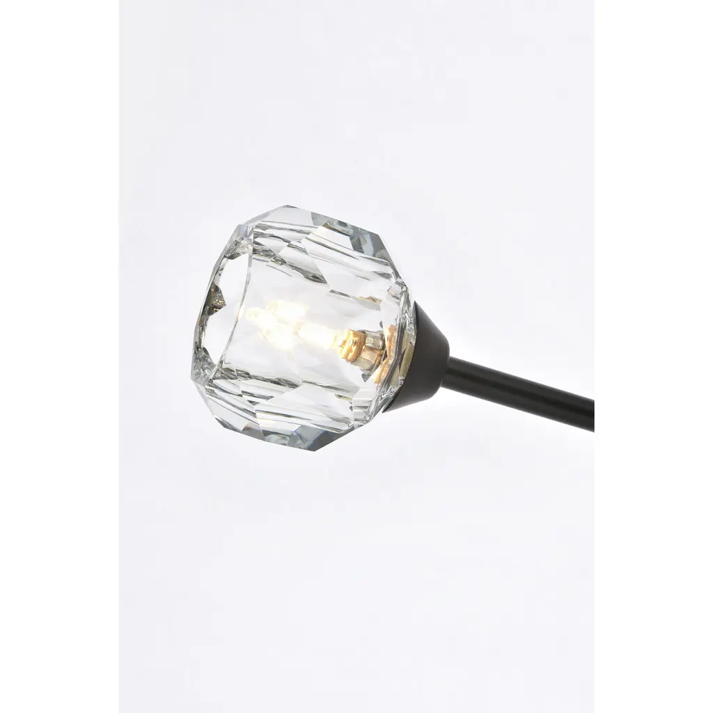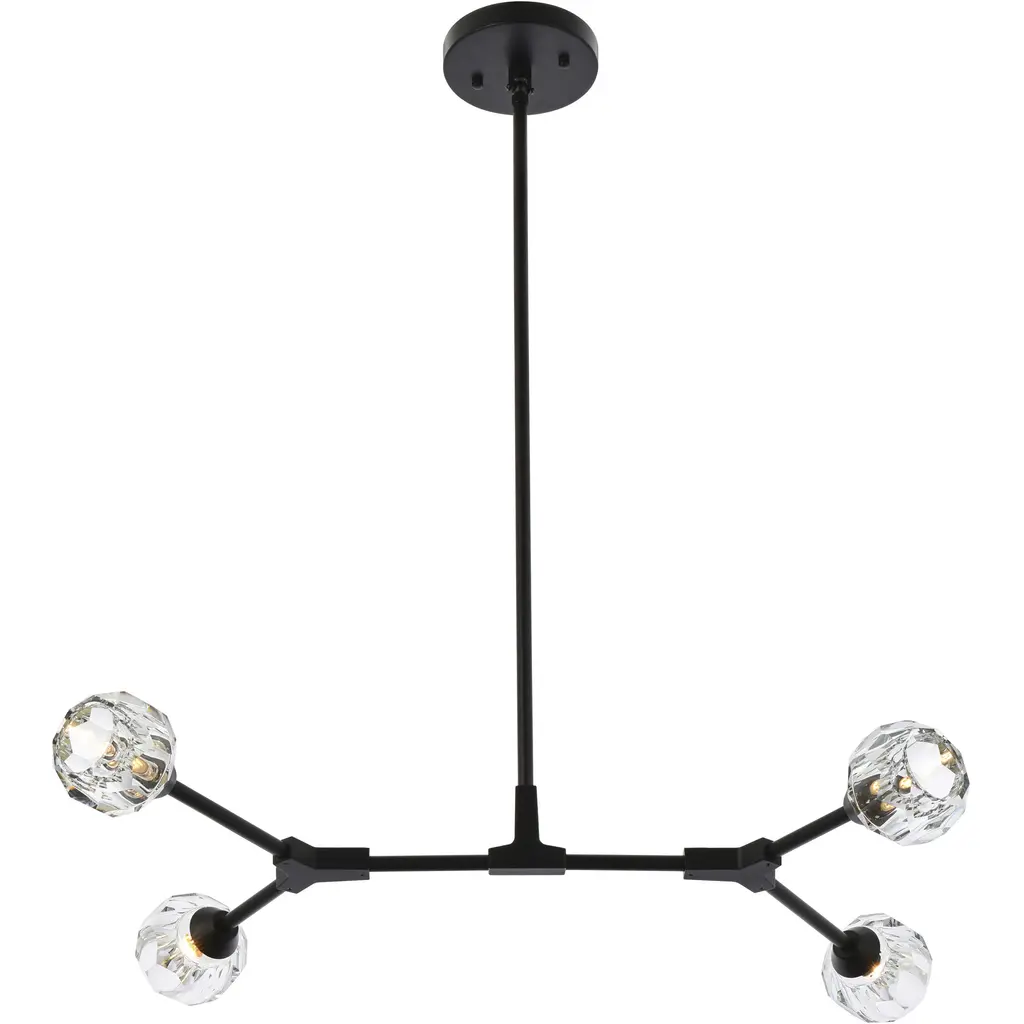 Crafted from iron metal and crystal, it features a round ceiling canopy, a hanging rod of 46 inch long, and arms extended with a solid K9 crystal ball from rods at all angles for a modern and linear look. Each 20W G9 bulb ( not included) is diffused by a faceted clear crystal ball giving the fixture a touch of industrial and glam inspiration. This work of art will add an artful focal point to your entryway, dining room, kitchen, or office. Evoking a sophisticated and timeless aesthetic to any space and will be an instant conversation started with its finely faceted crystal sphere which is polished by hand to reflect and refract light. Available in three different finishes in gold, chrome, and black.