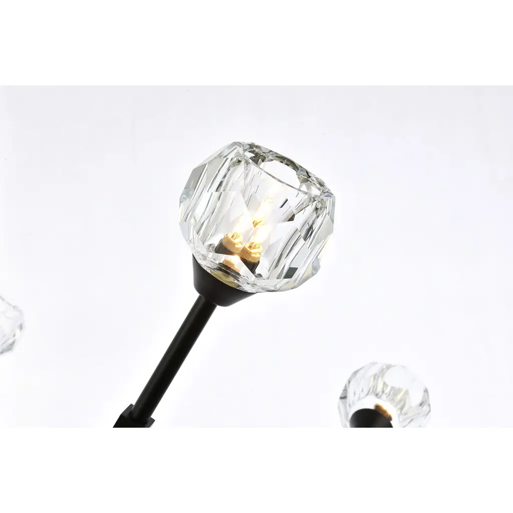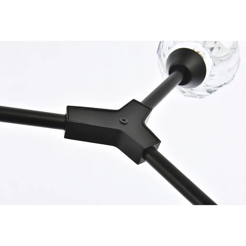 Crafted from iron metal and crystal, it features a round ceiling canopy, a hanging rod of 46 inch long, and arms extended with a solid K9 crystal ball from rods at all angles for a modern and linear look. Each 20W G9 bulb ( not included) is diffused by a faceted clear crystal ball giving the fixture a touch of industrial and glam inspiration. This work of art will add an artful focal point to your entryway, dining room, kitchen, or office. Evoking a sophisticated and timeless aesthetic to any space and will be an instant conversation started with its finely faceted crystal sphere which is polished by hand to reflect and refract light. Available in three different finishes in gold, chrome, and black.