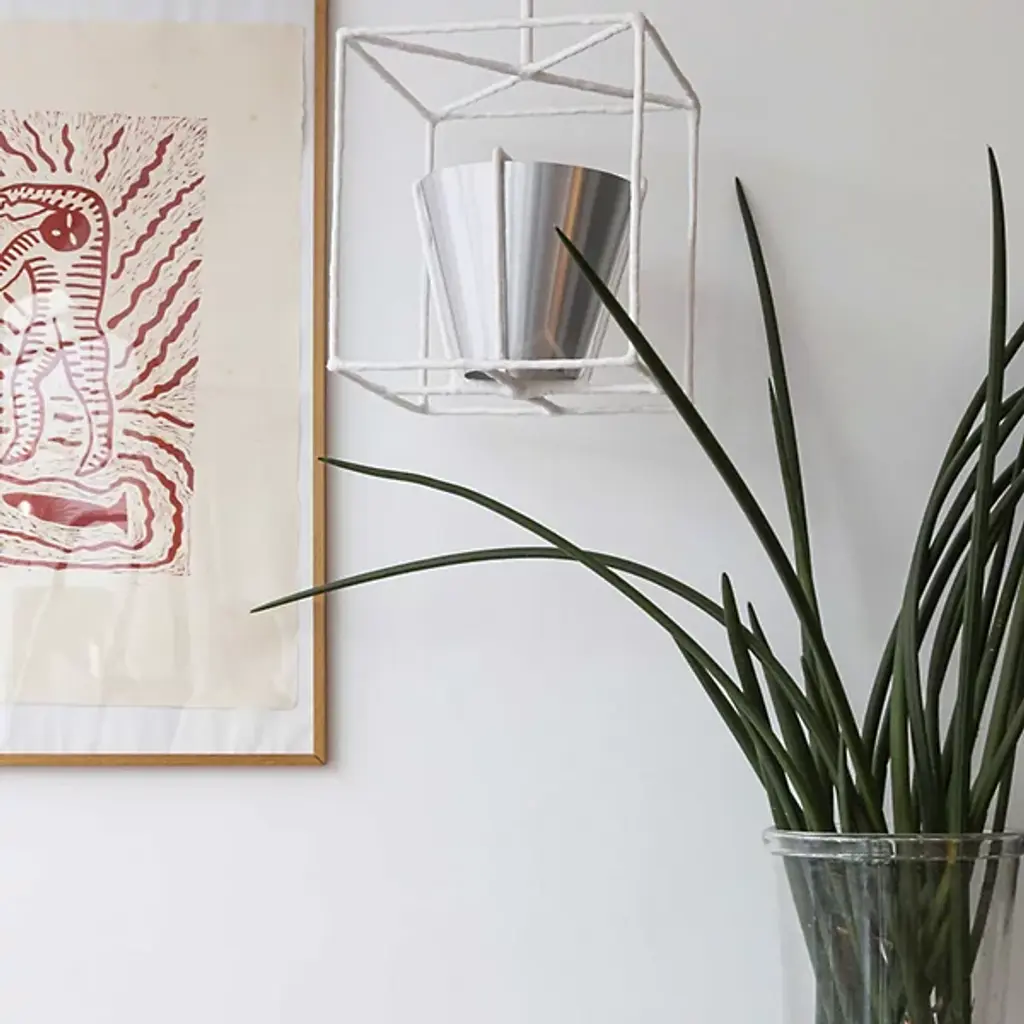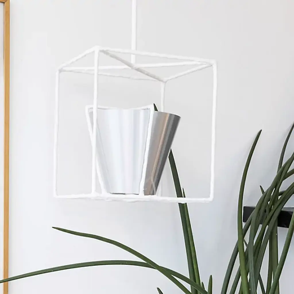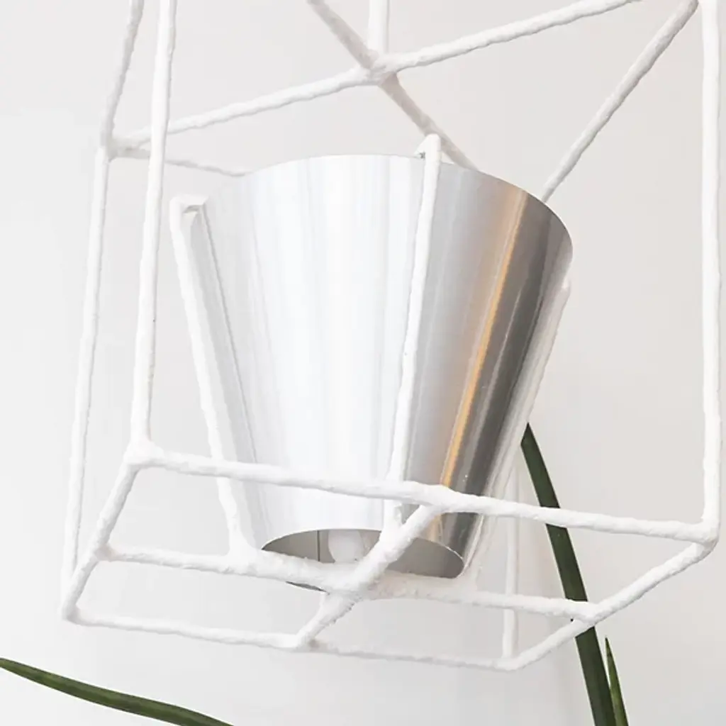 The Zenox Simple Pendant from Mathieu Challières uses a minimalist form, rustic texture, and an open linear structure to create a stylized column of light. Designed by Mathieu Challières, it embarks on a “Stylistic exercise on the ability of an object to combine with itself.” A composite box frame descends from a slender stem, placing central lighting inside an inverted conical shade at its center, casting a wide wash of reflected light upwards, and spilling a focused beam below.