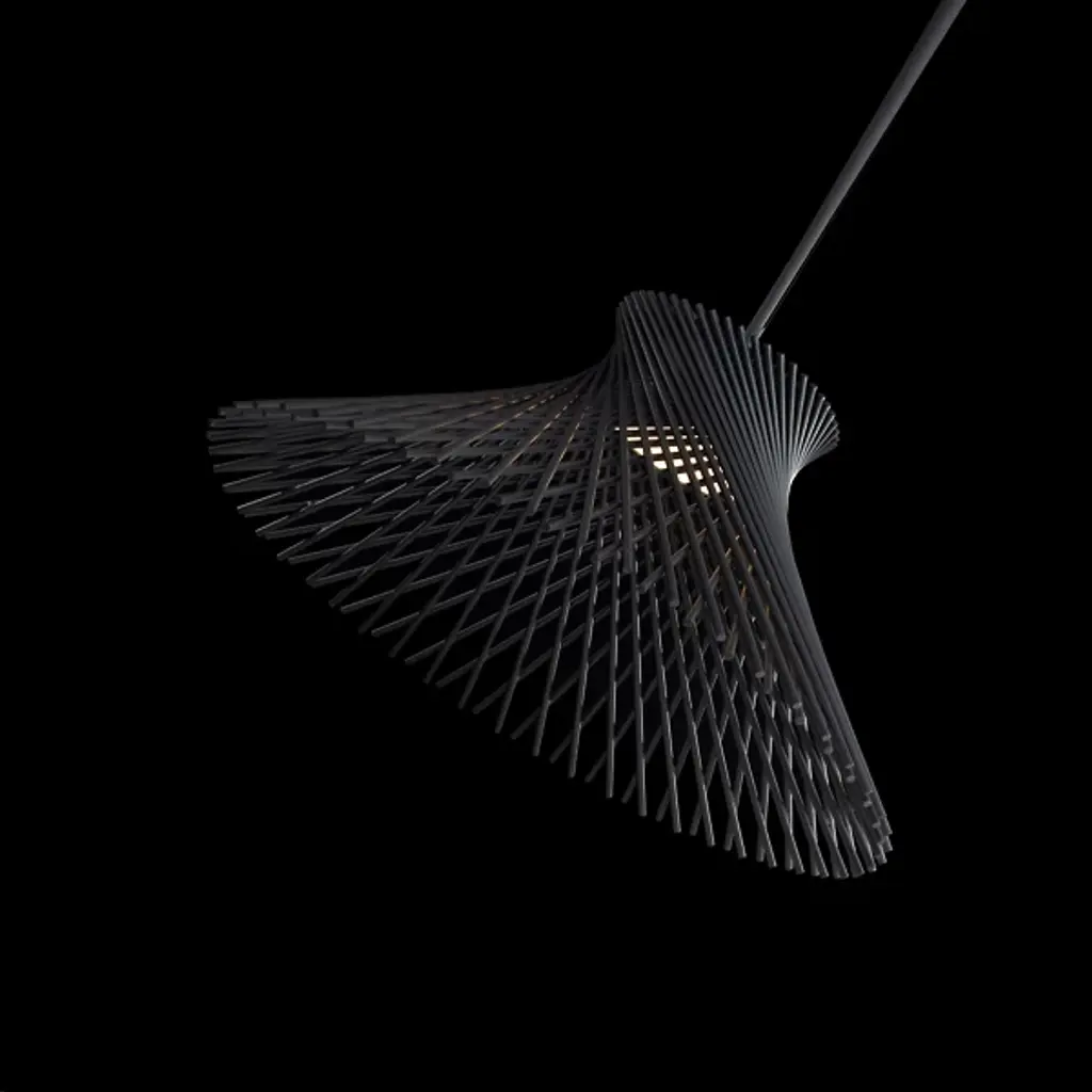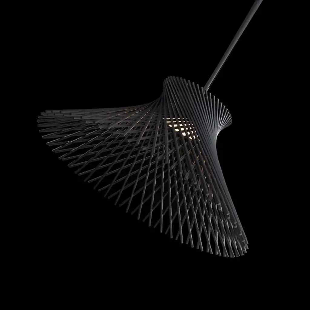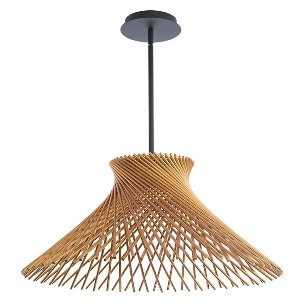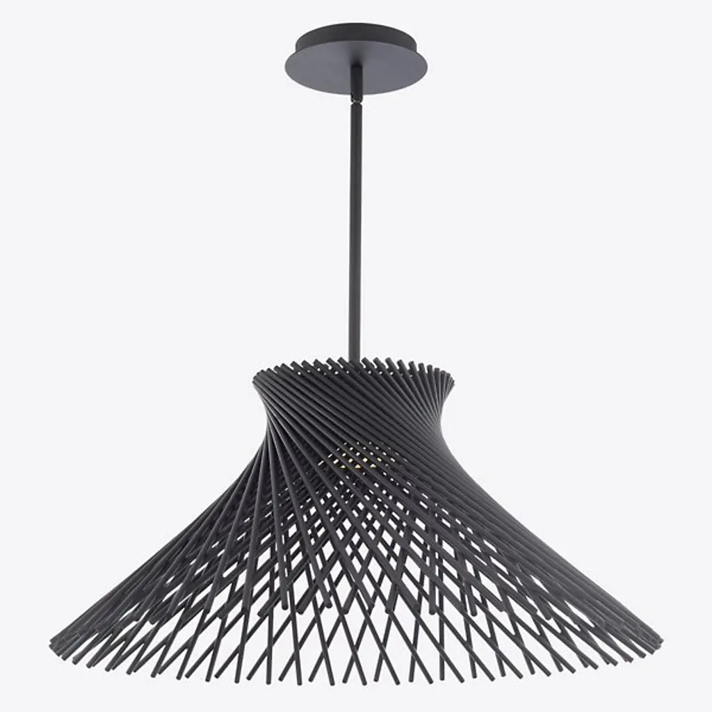 Broadcast a stately, sculptural character with the expansive appeal of the Zenya LED Pendant from Modern Forms. A tasteful sample of Japanese minimalism, it starts with a stepped circle canopy and slender downrod that keep the fixture in place, supporting damp-listed, ADA-compliant, and Dark Sky-listed lamping beneath an etched acrylic diffuser. The mellow, even lamping is accompanied by an airy swirling shade of slender metal rods welded together in an attractive lattice shape, casting intriguing shadows to the sides.