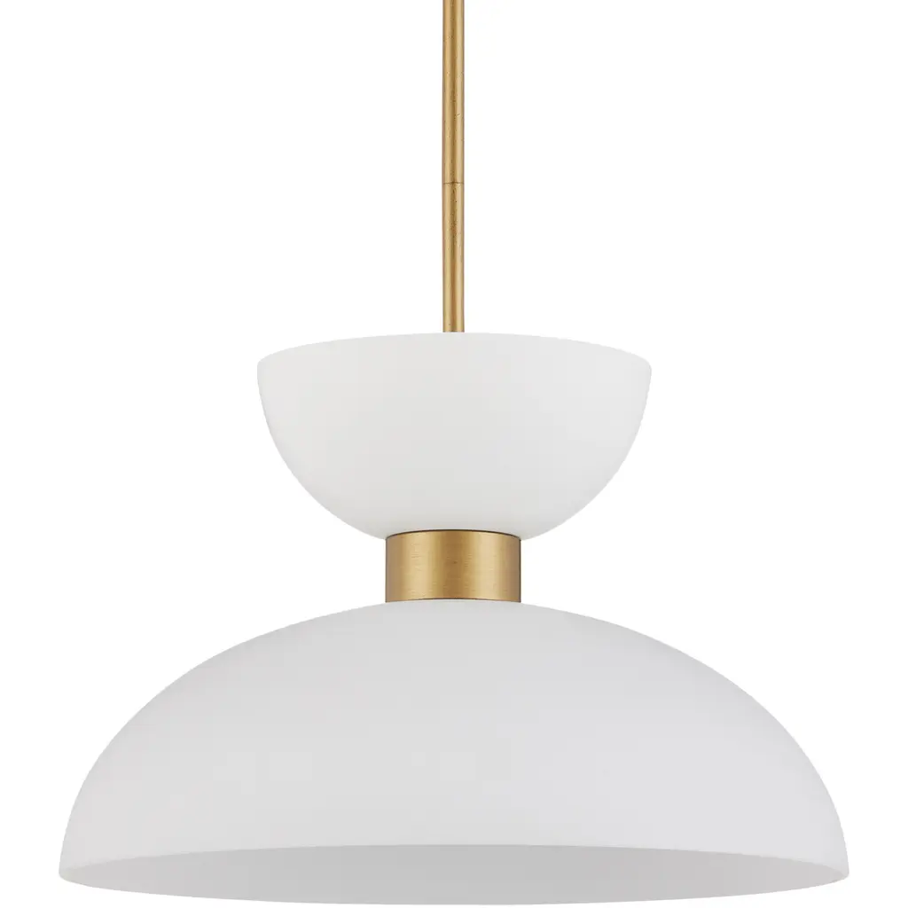 Zevio 1 Light 15.75 Inch Antique Brass And White And Opaque Pendant Ceiling Light