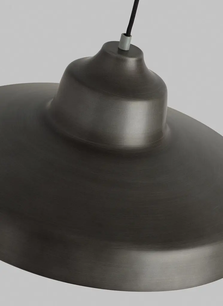 The Zevo pendant light from VC Modern is an oversized 18"diameter version of a popular industrial-inspired design and creates a bold statement no matter which of the diverse finish options is selected. Fixtures with this ubiquitous silhouette were used for decades as light in warehouses, factories, barns and are now found as light in hip restaurants and eclectic homes. Available in modern finishes. Damp-rated and dimmable.