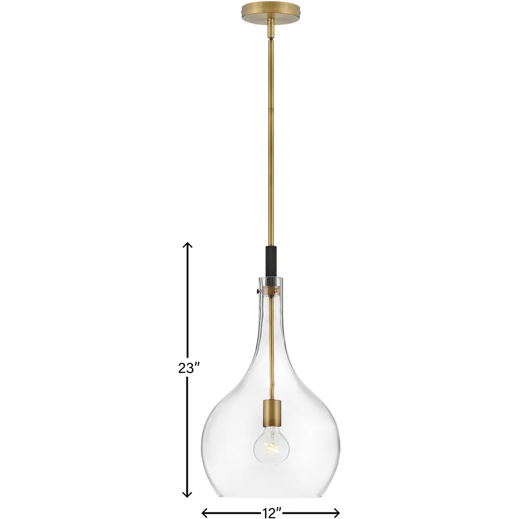 Ziggy 1 Light 12 Inch Heritage Brass With Black Indoor Pendant Ceiling Light In Clear